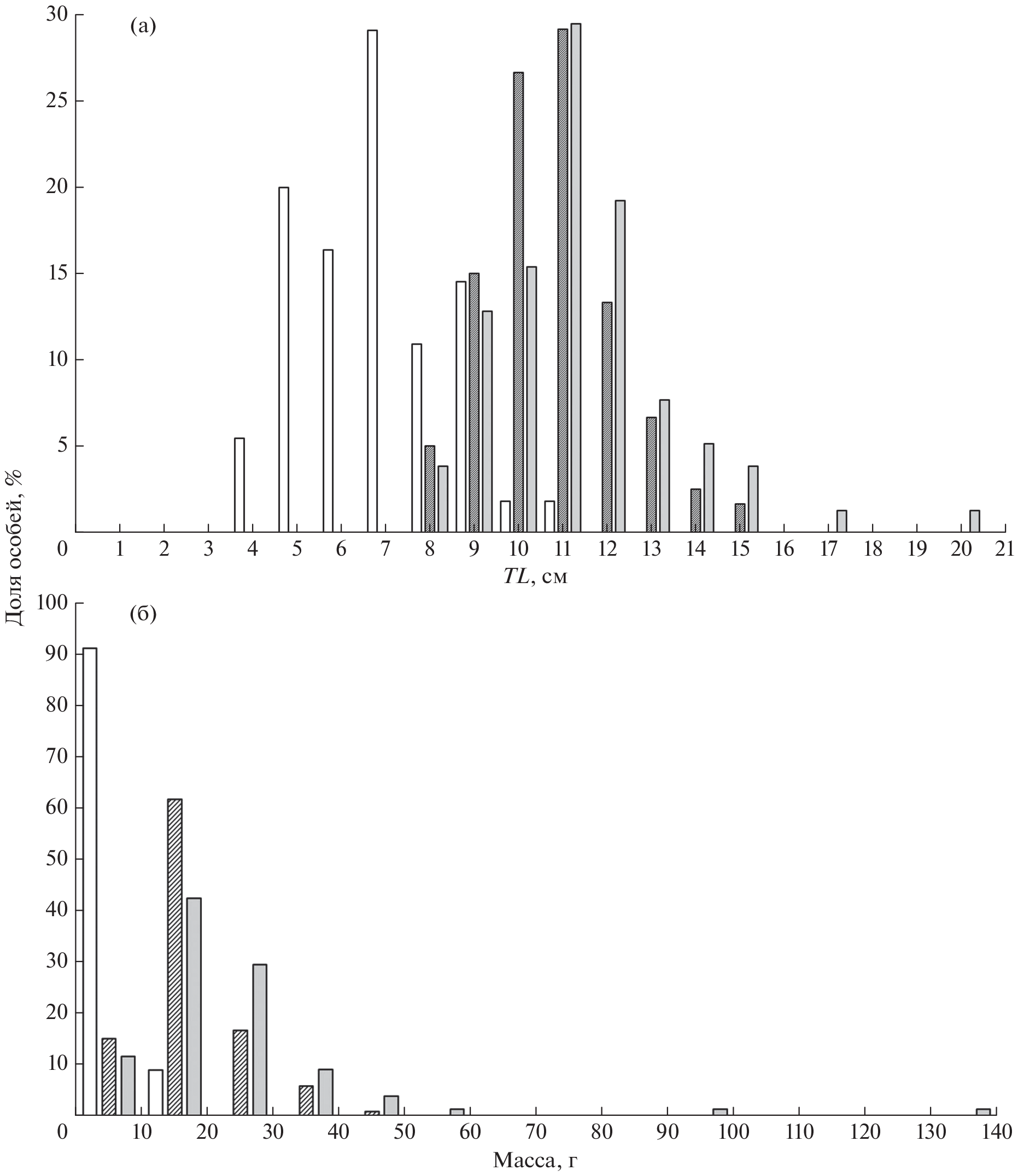 The results of the study of the distribution and biology of the duskyfin glassy perchlet Parambassis wolffii (Bleeker, 1850) in the Mekong Delta in 2019–2020 are presented. It is established that the species reaches the highest abundance and biomass in the freshwater part of the delta. The water temperature at which individuals of the species were encountered was 27.8–34.1°C, salinity, up to 1.51‰, depths, from 2 to 35 m. The maximum total length of females and males was 20.0 and 14.7 cm, respectively, and the maximum age was 6 years. The parameters of the von Bertalanffy equation are as follows: the maximum length is 17.2 cm, the growth rate constant is 0.18, t0 = −2.35. The value of the coefficient b in the equation on the weight-length relationship is 3.002 ± 0.056 for females (isometry) and 2.774 ± 0.064 for males (negative allometry). Intersexual differences by the in Fulton’ condition factor were established: in females 3.71 ± 0.04, in males 3.53 ± 0.03. The first mature individuals were found at a length of 7–8 cm at the age of 1+.