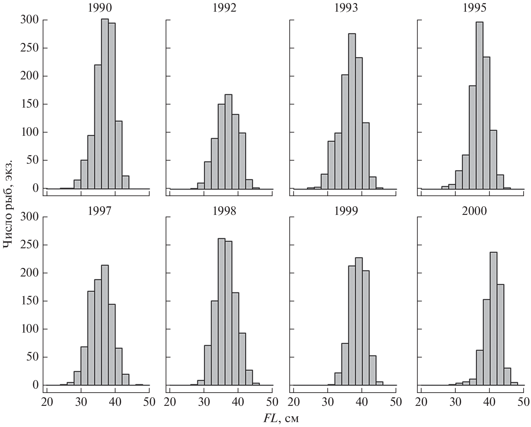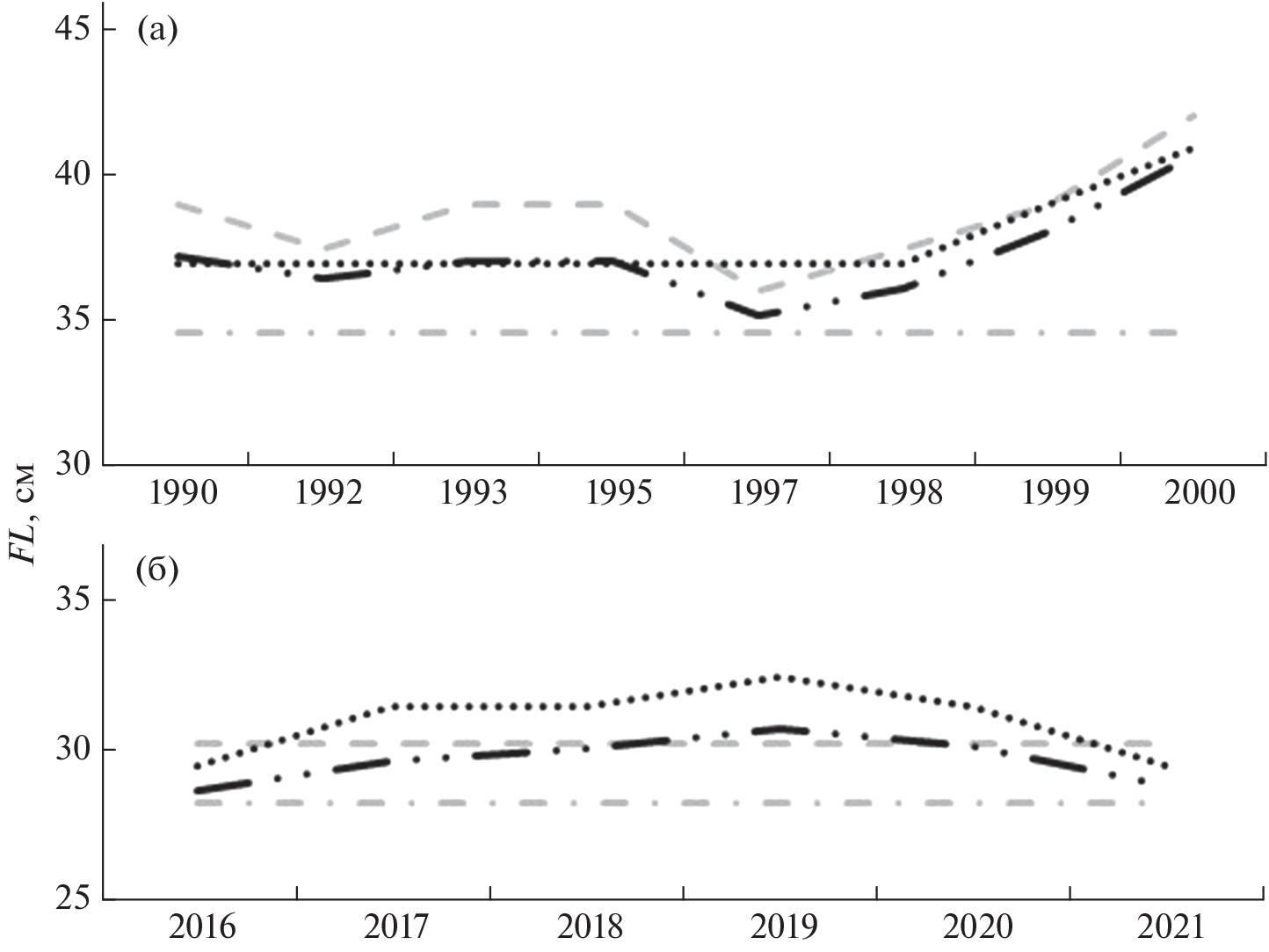 - Froese R., Binohlan C. 2000. Empirical relationships to estimate asymptotic length, length at first maturity and length at maximum yield per recruit in fishes, with a simple method to evaluate length frequency data // J. Fish Biol. V. 56. № 4. P. 758–773. https://doi.org/10.1111/j.1095-8649.2000.tb00870.x