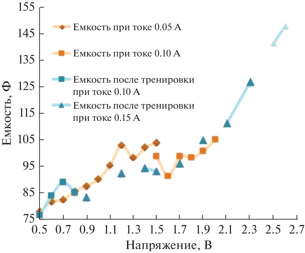 This paper presents a model of an electrode material for a hybrid capacitor and experimentally confirmed ways to improve cell parameters, such as increasing the energy intensity of the cell, increasing the operating voltage in cells with an aqueous electrolyte to 2.6 V, twice the decomposition potential of water, and reducing internal resistance. The technology of manufacturing electrode materials for hybrid capacitors is also given and its choice is justified.