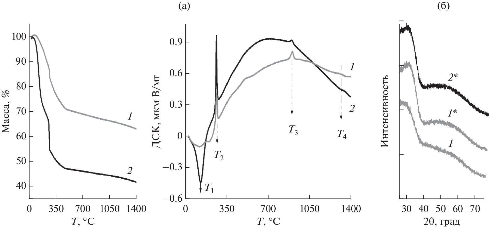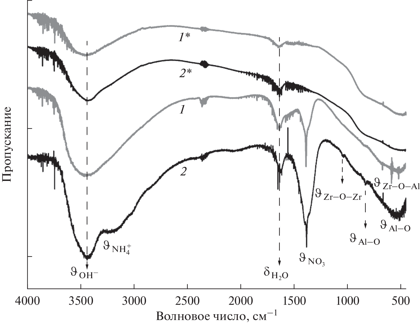 Results are presented of the study of sorption of anion-active dye and dichromate ions from aqueous solutions by powders of 35 mol % Al2O3–65%[ZrO2–3% Yb2O3] synthesized by the sol–gel method at 10°C in the presence of polyvinylpyrrolidone are presented. The obtained hydrogels were dried in the traditional way at 180°C and with microwave drying without calcination and with calcination at 500°C. The sorbents were characterized by TG/DSC, XRD, IR spectroscopy, and BET/BJH and tested under conditions of long-term and dynamic sorption. The calcined sample with microwave drying showed there to be an increased degree of extraction of test molecules and surface activity—the initial rate and limiting adsorption calculated from the model of the two-point form of substance adsorption.