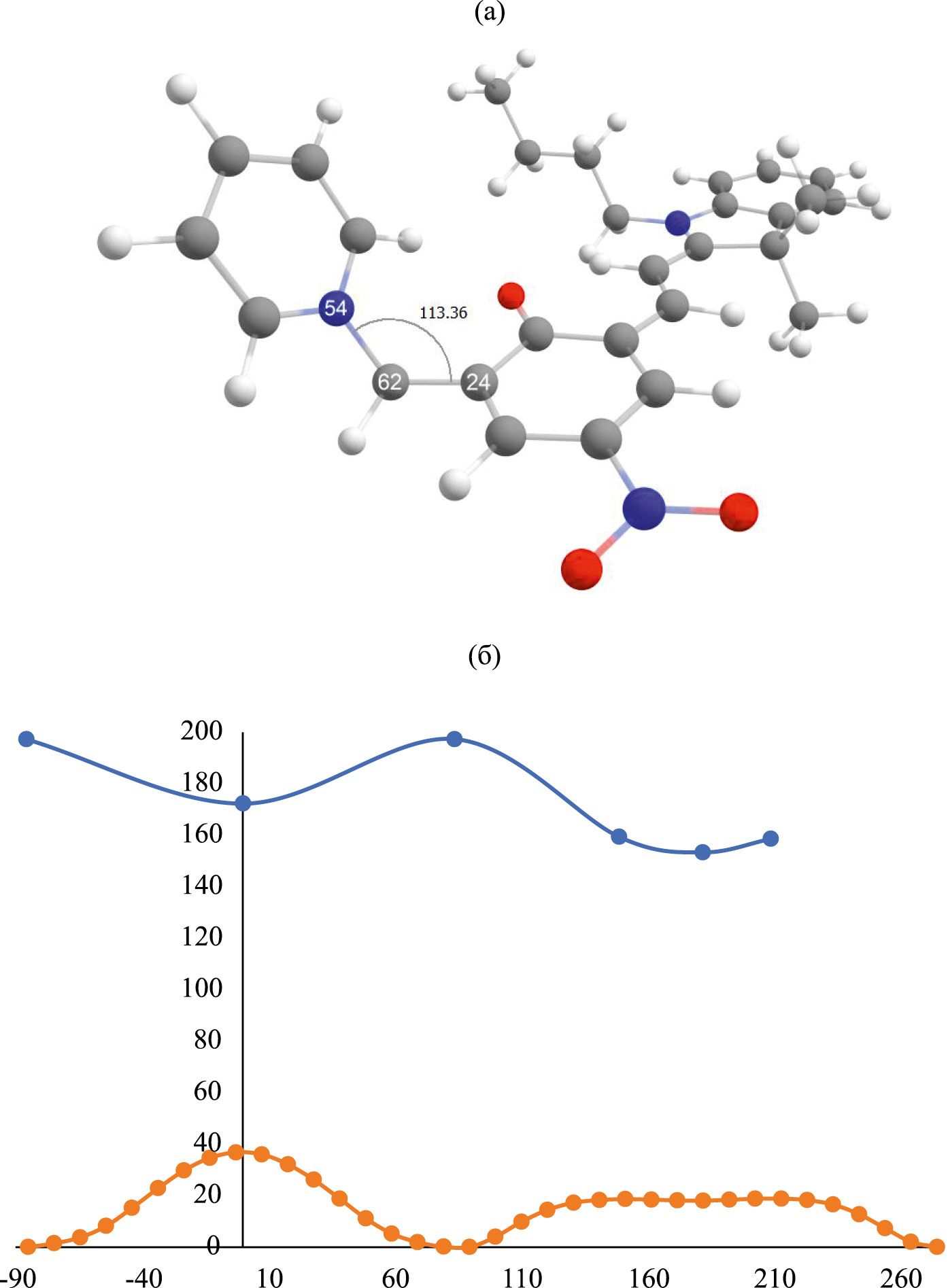 Данные об энергии конформеров (относительно наиболее стабильной закрытой формы Ia LC) представлены в табл. 1. Для спироформы недифильного аналога соединения I устойчивыми оказались две его конформации, аналогичные формам Ia и Ib (рис. 2) и отличающиеся способом расположения пиранового кислорода относительно неподеленной электронной пары атома азота индолиновой части (обозначены CL и CR, где L – означает левостороннее расположение, в R– правостороннее). Такой результат вполне согласуется с литературными данными [44].