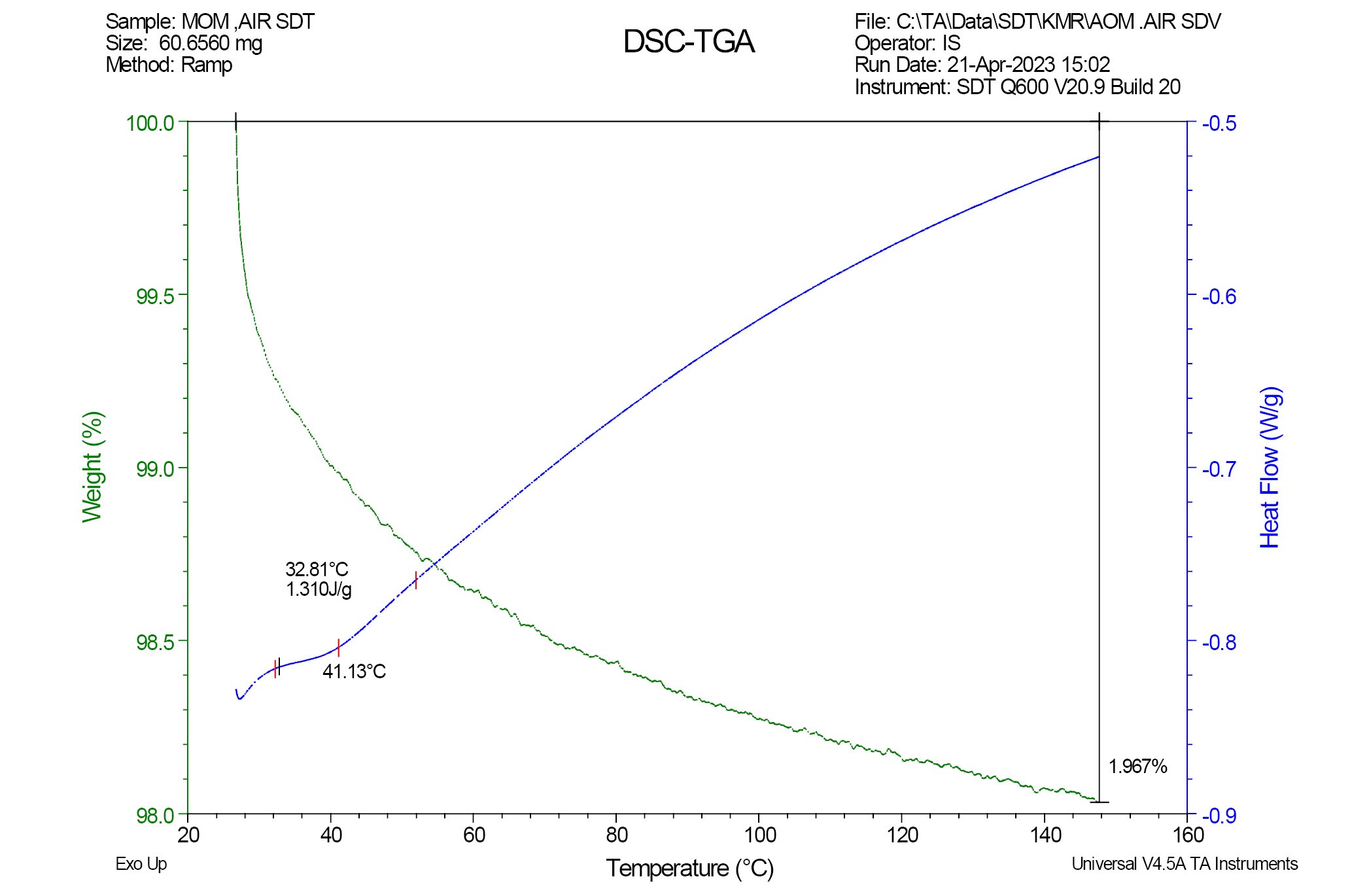 Кривые термограммы снимали на приборе СДТ Q600 (США), совмещающим методам ДСК и ТГА.