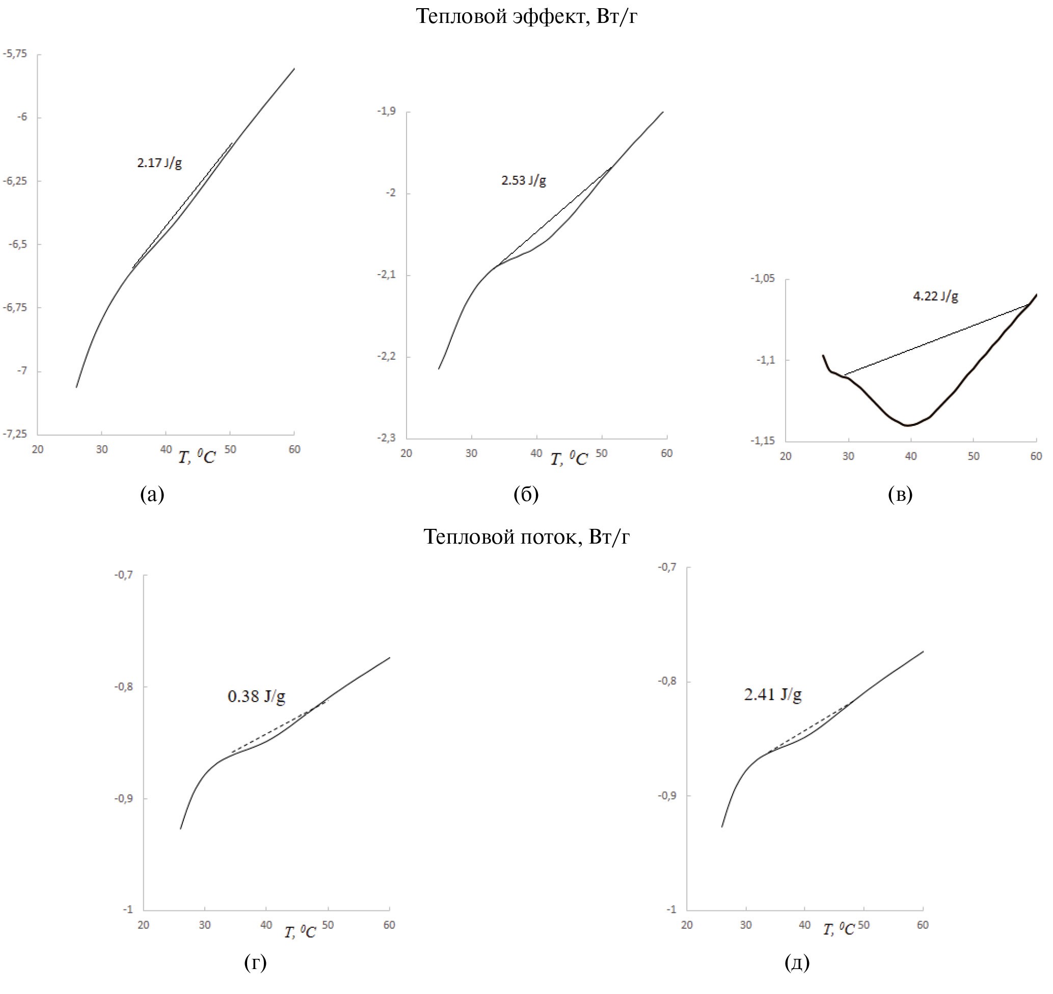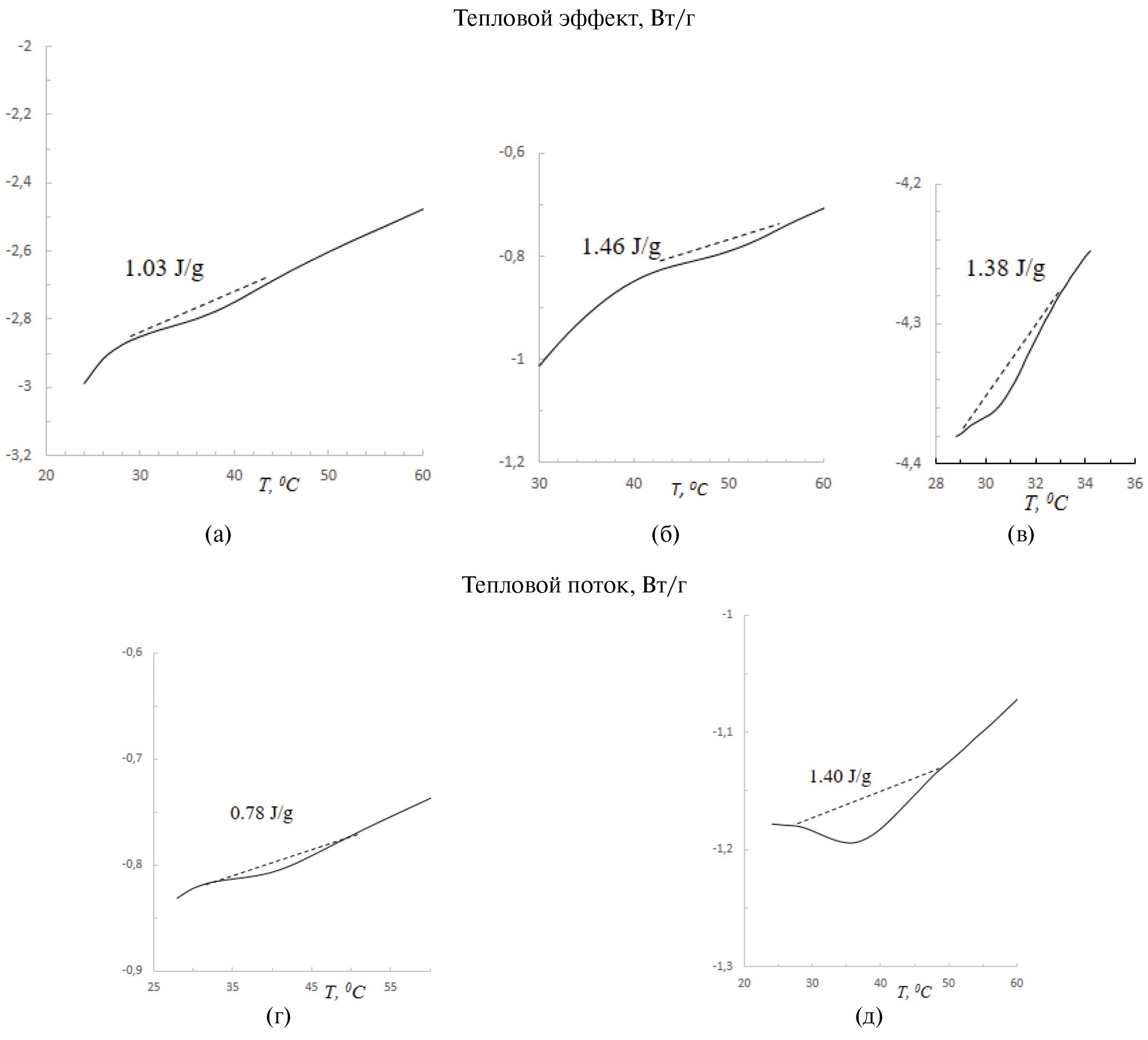 В случае гидрофильного полимера (М) фазовый переход при воздействии температурной обработки осуществляется с меньшим тепловым эффектом, что определяется его температурой стеклования.