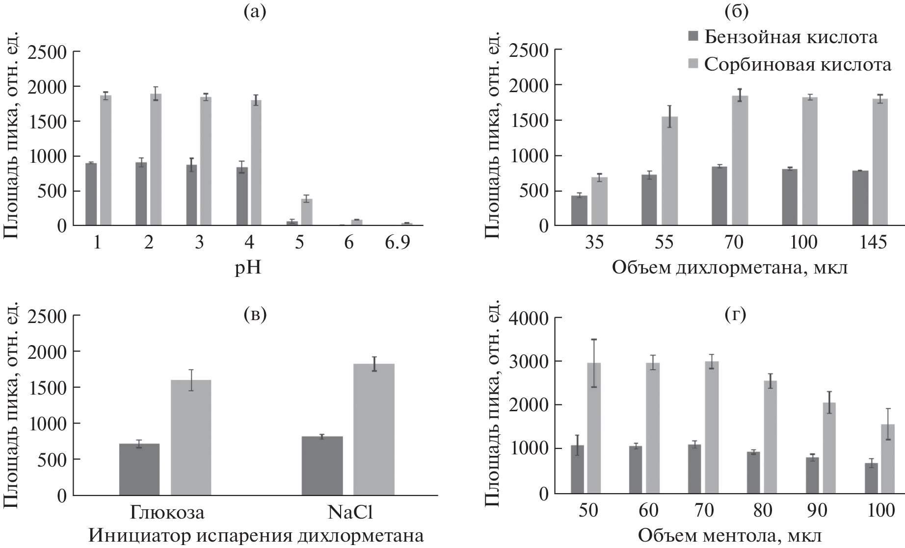 - Dzieciol M., Wodnicka A., Huzar E. Determination of benzoic and sorbic acids in foods // Ecol. Chem. Eng. A. 2012. V. 19. P. 451.