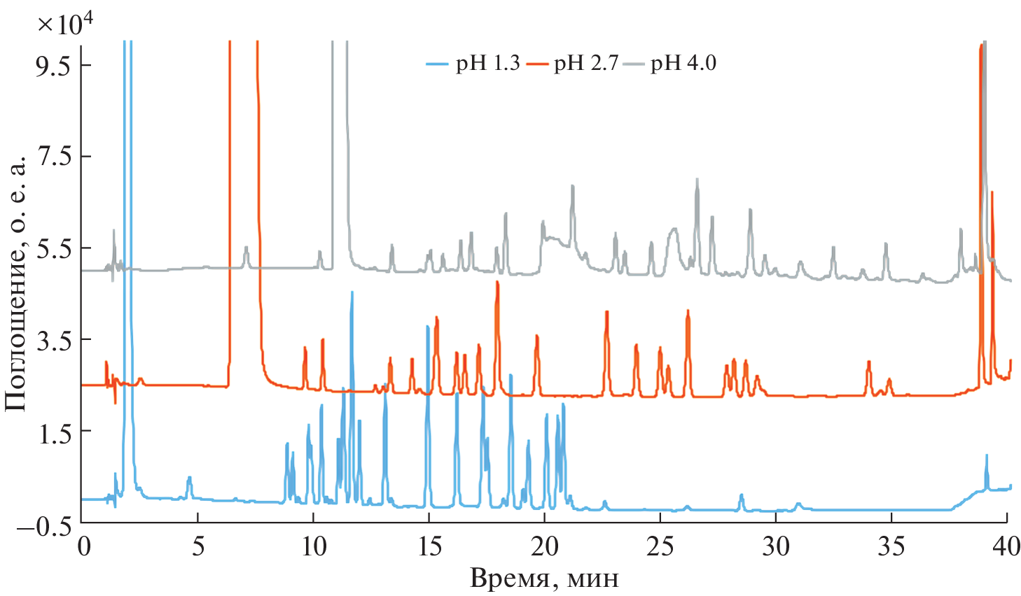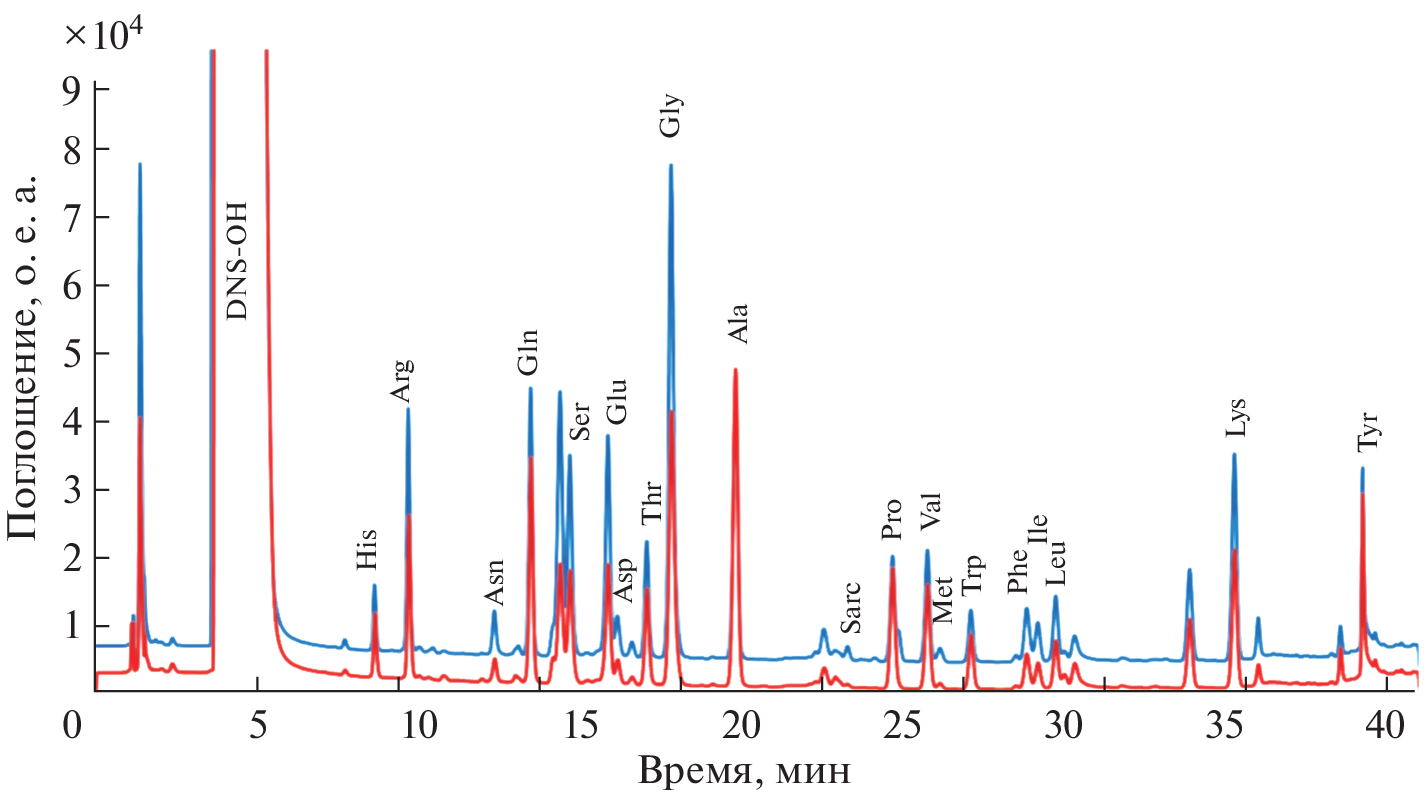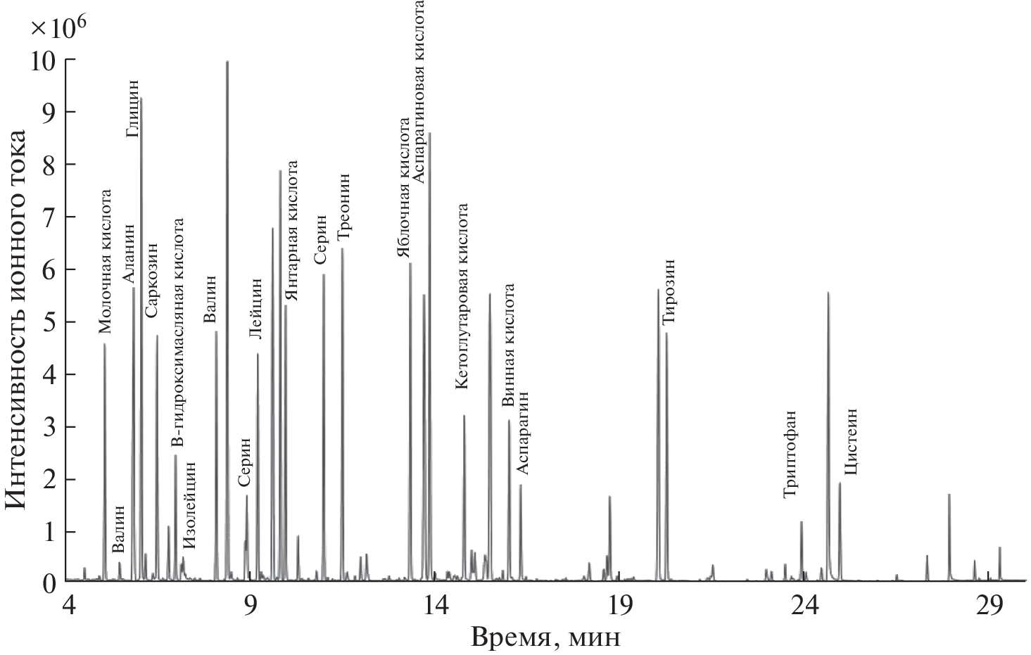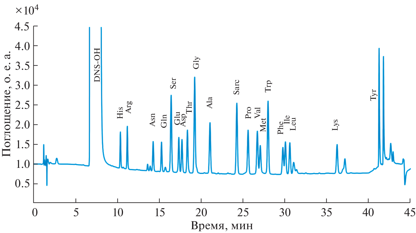 Предложены подходы к высокочувствительному определению низкомолекулярных жирных кислот методом газовой хроматографии с масс-спектрометрическим детектированием (ГХ-МС) и аминокислот методом ВЭЖХ с применением диодно-матричного детектора в образцах сыворотки крови больных с диагнозом эндометриоз. Найдены условия селективного определения 23 аминокислот методом обращенно-фазовой ВЭЖХ со спектрофотометрическим детектированием в виде производных с дансилхлоридом и выявлены основные факторы, влияющие на параметры их разделения (рН подвижной фазы, природа растворителя и буферного раствора, профиль градиентного режима). Показано, что традиционное ГХ-определение метаболитов в форме силильных производных не обеспечивает требуемой чувствительности: высокая летучесть производных уже на стадии пробоподготовки приводит к значительным потерям и, как следствие, к невоспроизводимым результатам. Оптимизированы условия определения органических кислот без дериватизации методом ГХ-МС на полярной неподвижной фазе. Предложена схема подготовки сыворотки крови к анализу (осаждение белков и очистка от липидов) и условия селективного разделения аналитов (температурный градиент 70−230°C). Разработанные подходы обеспечили получение характеристических профилей органических кислот в образцах сыворотки крови больных с эндометриозом и миомой матки (в качестве группы сравнения).