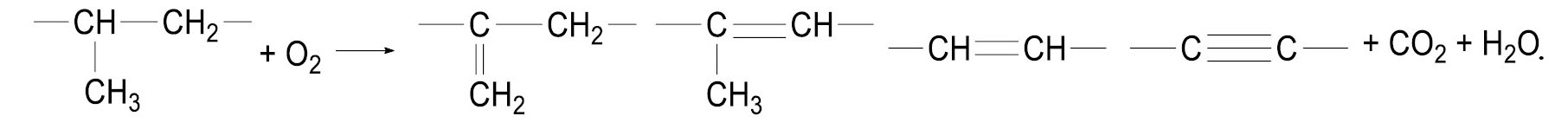 Наряду с реакциями глубокого окисления при взаимодействии с кислородом возможны химические взаимодействия, приводящие к образованию кратных связей, конденсированных продуктов неполного окисления (см. схему 1).