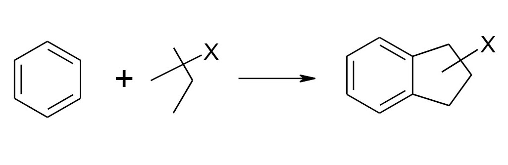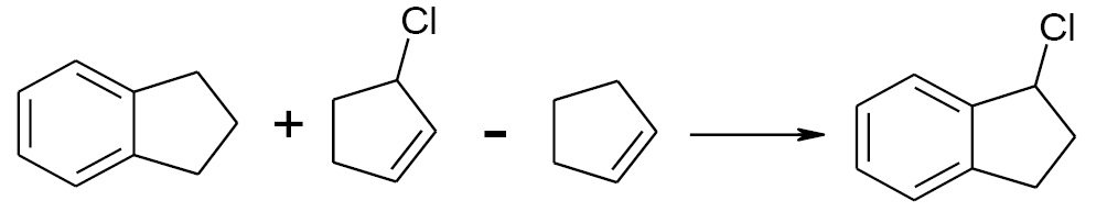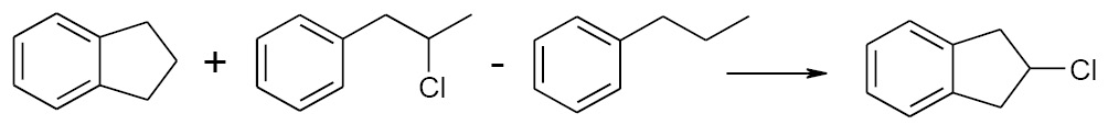 В последнем из вариантов уже отражен такой важный стерический фактор, как наличие атома хлора в заместителе в a-положении к ароматической системе. Для изомерного 2-хлориндана можно выбрать следующие схемы “сборки”: