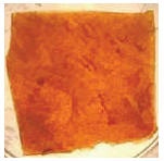 При формировании частиц Fe3O4 в пленках выбрали концентрации солей железа(III) и железа(II) 0.10 и 0.05 М соответственно. Для получения более мелких и однородных по размеру частиц магнетита в эксикатор помещали 2.5%-ный раствор аммиака. Для соблюдения условий, необходимых для получения однородных по цвету сенсорных элементов, в дополнение к вентилятору модифицировали способ импрегнирования полимера солями железа. Пленки в течение разного времени выдерживали в растворах под воздействием ультразвукового излучения для более равномерного и быстрого проникновения солей железа в гель. Магнитная платформа в эксикаторе, на которую помещали пленки, способствовала более однородному распределению растущих частиц Fe3O4 по всему объему пленок. В табл. 1 приведены фотографии в проходящем свете пленок, полученных при разном времени импрегнирования их солями железа. Время роста частиц Fe3O4 во всех случаях составило 15 мин. По мере увеличения количества магнетита композиты приобретали более темный оттенок коричневого цвета. Начиная с третьего образца, композиты имеют практически одинаковый цвет, что, вероятно, связано с достижением предельного насыщения слоя ПВС солями железа.