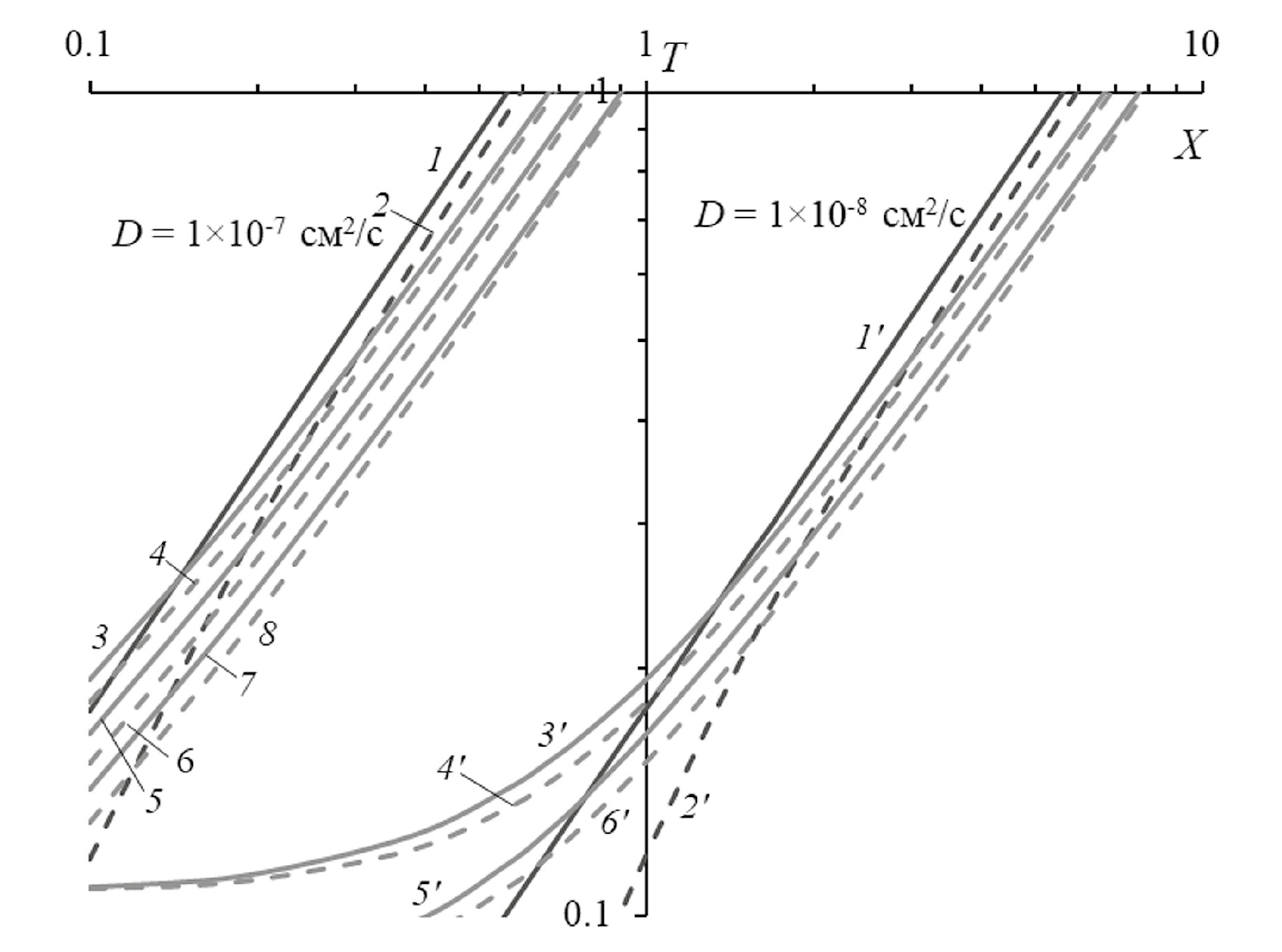 *χ = 0.1, D = 1 × 10–7 см2/с.