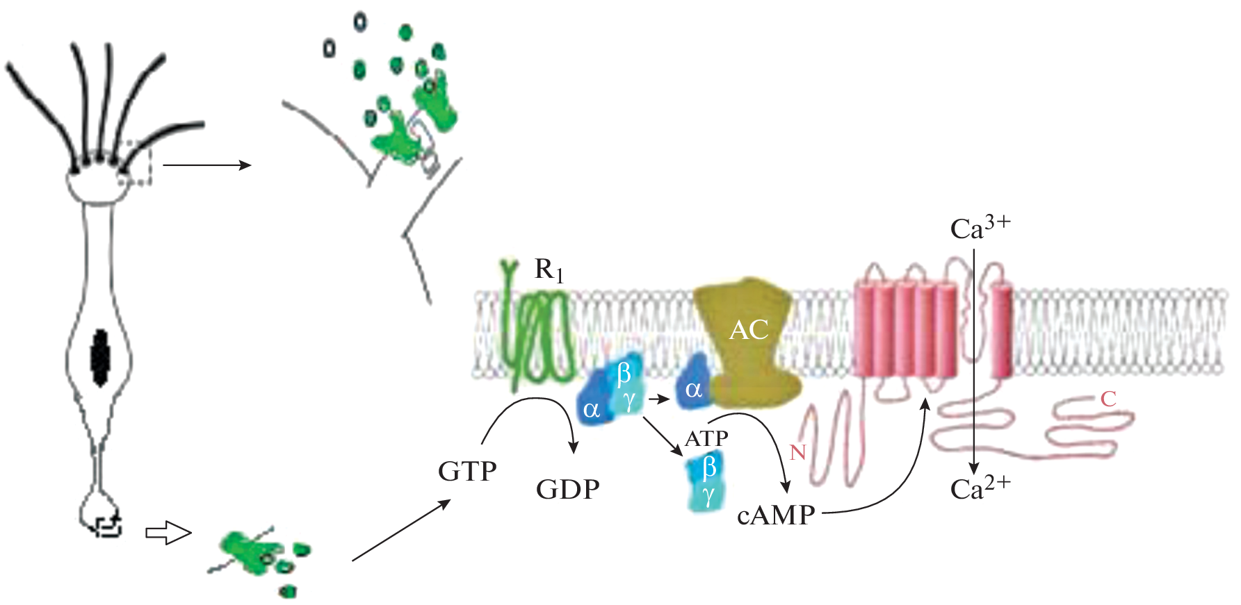 - Bakalyar HA, Reed RR (1990) Identification of a specialized adenylyl cyclase that may mediate odorant detection. Science 250: 1403–1406. https://doi.org/10.1126/science.2255909