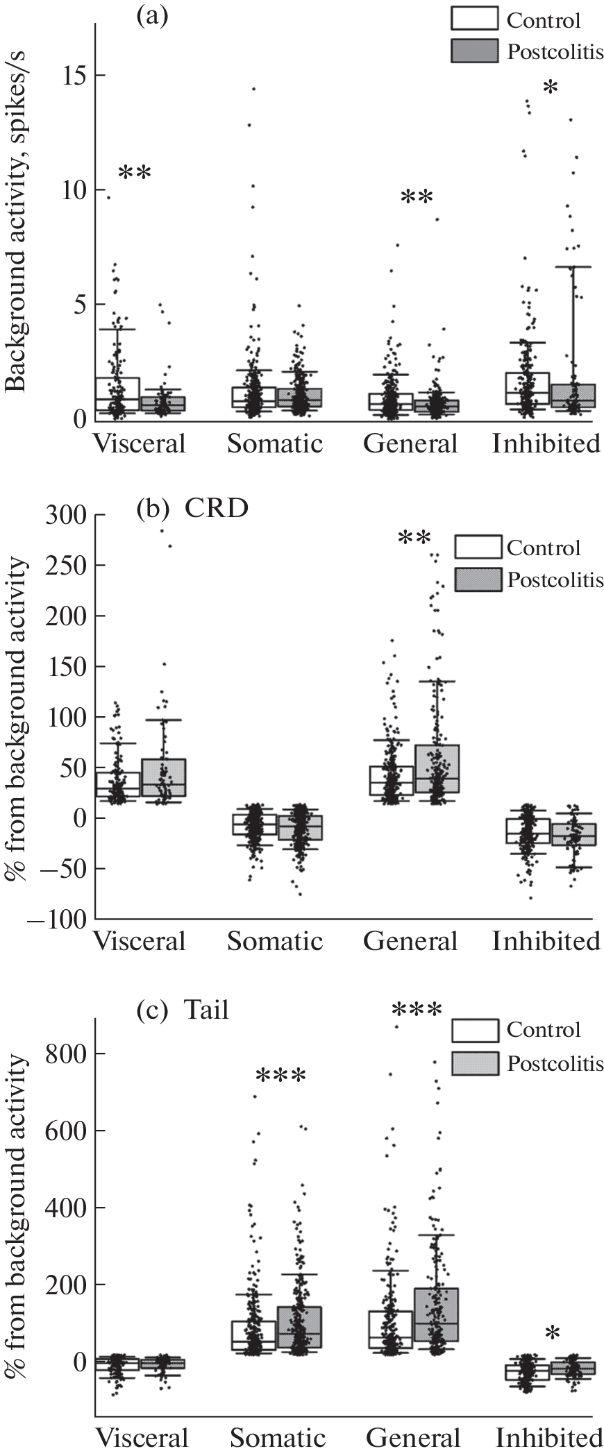 - Lyubashina OA, Sivachenko IB, Sokolov AY (2019) Differential responses of neurons in the rat caudal ventrolateral medulla to visceral and somatic noxious stimuli and their alterations in colitis. Brain Res Bull 152:299–310. https://doi.org/10.1016/j.brainresbull.2019.07.030