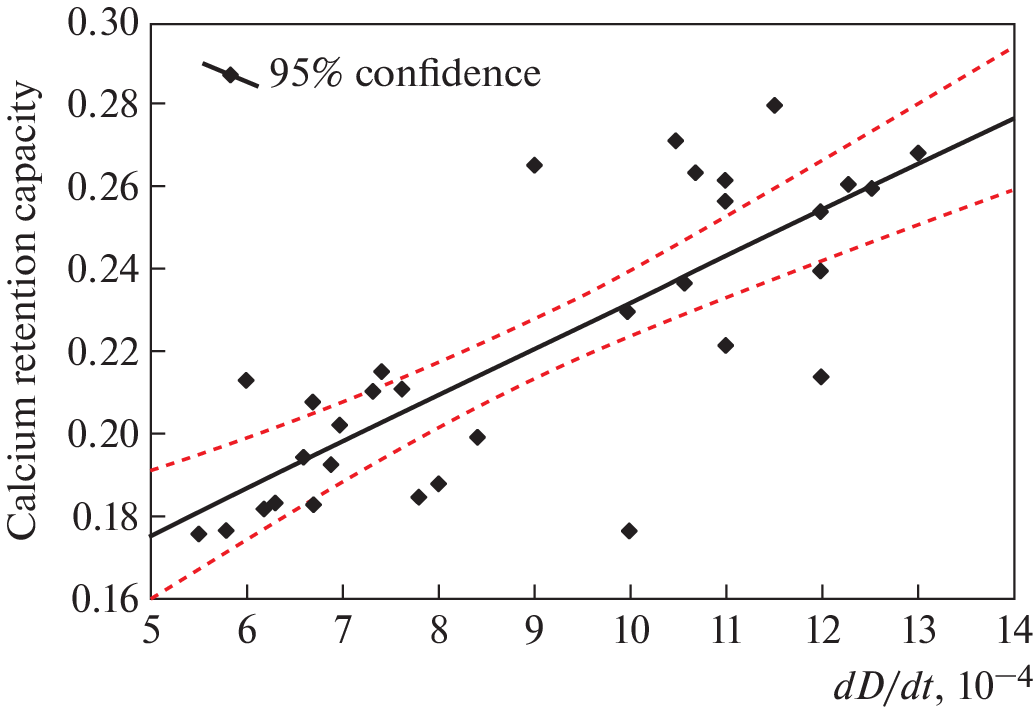Calcium is one of the most important intracellular messengers that regulate physiological and biochemical processes in the cell. Mitochondria are able to deposit calcium ions and are involved in the regulation of the calcium signal. Hypothermic conditions in homoiothermic animals can lead to disruption of this important function of mitochondria and pathological consequences. The aim of this study is to study the effects of moderate (30°C) hypothermia of varying duration on the calcium-accumulating capacity of rat liver mitochondria. The experiments were carried out on male rats Wistar. Hypothermia was induced by external cooling of the animals in Plexiglas chambers with a jacket through which cold water circulated. Mitochondria were isolated from the liver of decapitated rats by differential centrifugation. The calcium-accumulating capacity of mitochondria was assessed by the kinetics of calcium-induced swelling of mitochondria and their calcium capacity. A study of the kinetics of calcium-induced swelling of mitochondria showed that during short-term moderate (30°C) hypothermia, the rate of swelling of mitochondria decreases, prolongation of hypothermia to 1 h contributes to a further decrease in the swelling rate, and to 3 h, its normalization. A positive correlation was found between the rate of calcium-induced swelling and the calcium capacity of mitochondria (r = 0.79). Thus, with prolonged exposure to the cold factor in rats, a number of compensatory-adaptive reactions are activated. The decrease in the rate of Ca2+ – induced swelling and calcium capacity of mitochondria at the initial stages of hypothermia may be associated with the formation of mitochondrial pores and is reversible.