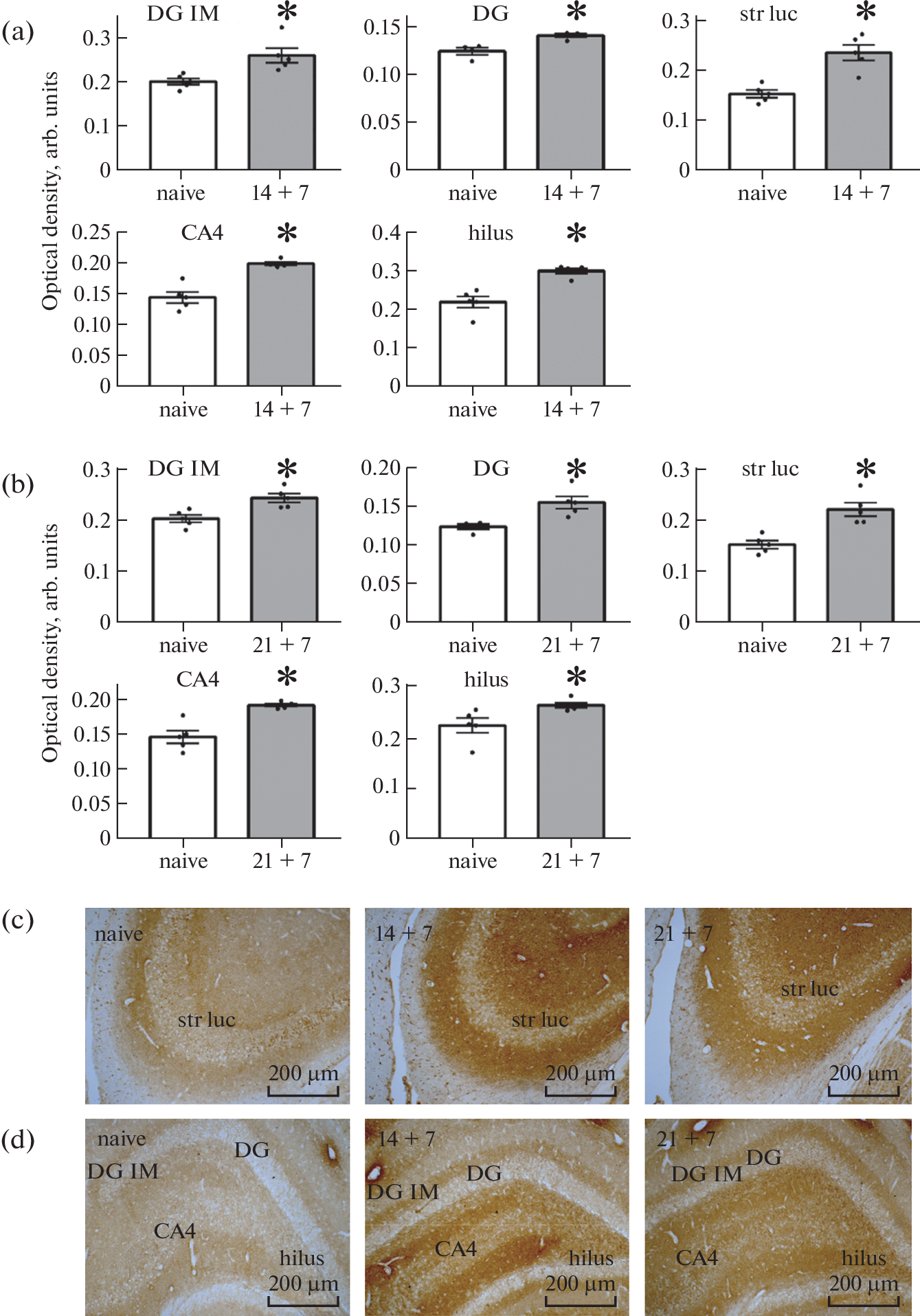 - Kulikov AA, Naumova AA, Aleksandrova EP, Glazova MV, Chernigovskaya EV (2021) Audiogenic kindling stimulates aberrant neurogenesis, synaptopodin expression, and mossy fiber sprouting in the hippocampus of rats genetically prone to audiogenic seizures. Epilepsy Behav 125: 108445. https://doi.org/10.1016/j.yebeh.2021.108445