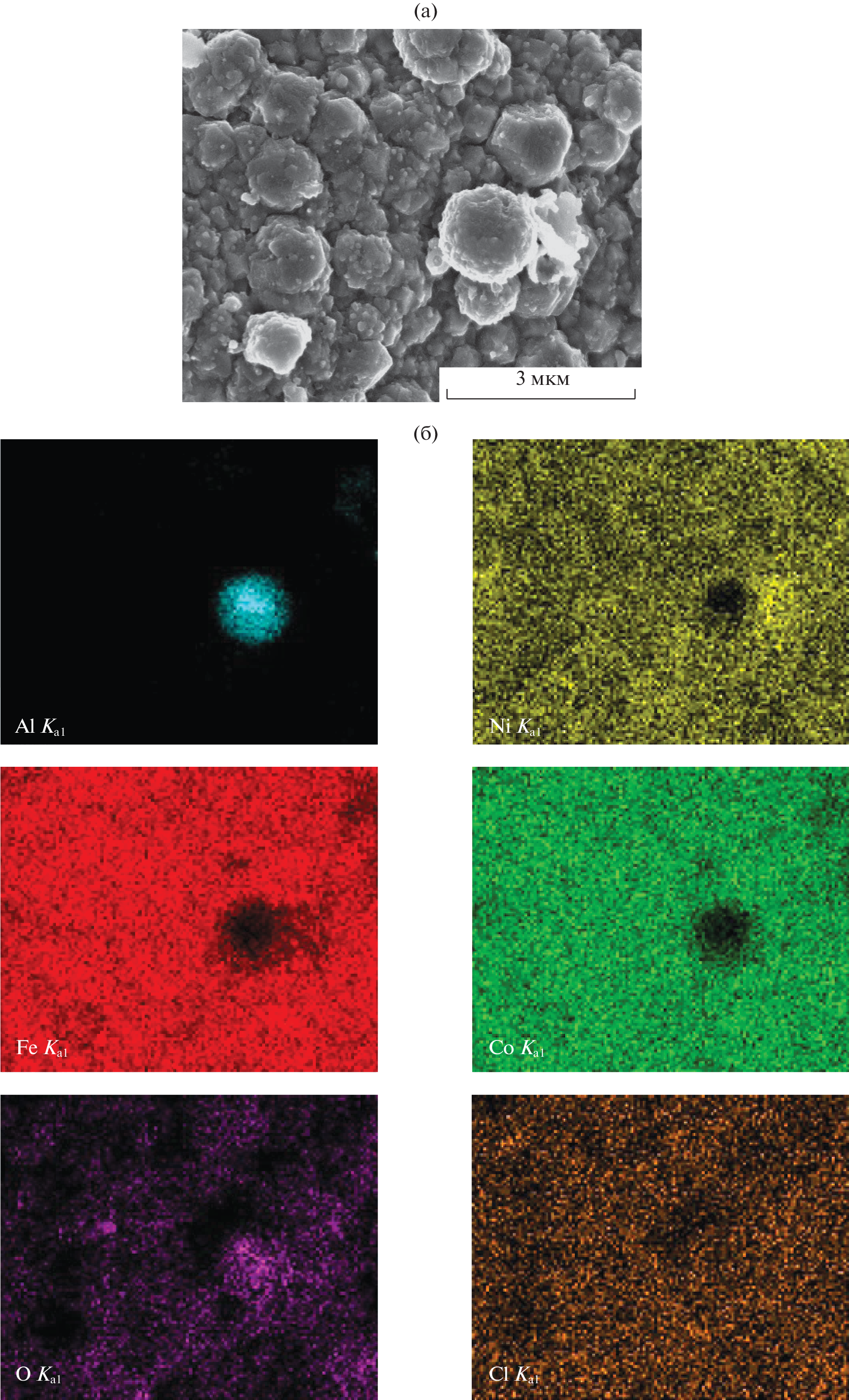 The possibility of preparation of a polymetallic dispersed Fe–Ni–Co–Al system in aqueous solutions by a redox process between iron(III), nickel(II), cobalt(II) ions and aluminum microparticles in aqueous solutions is shown. In this case, a structure is formed in the aqueous solution, which, from the standpoint of the phase composition, is a mechanical mixture of elemental metals. It has been found that the synthesized Fe–Ni–Co–Al system consists of metallic aluminum particles coated with elemental metals (iron, nickel, and cobalt) with a minimum content of the oxide phase. Additional HF modification of the studied sample of the polymetallic system in low pressure inductive discharge plasma leads to the formation of a number of intermetallic compounds, mainly CoFe (~60%) and FeNi (~15%), and also ensures particle spheroidization. The resulting intermetallic powder composition is potentially suitable for use in additive manufacturing technologies.