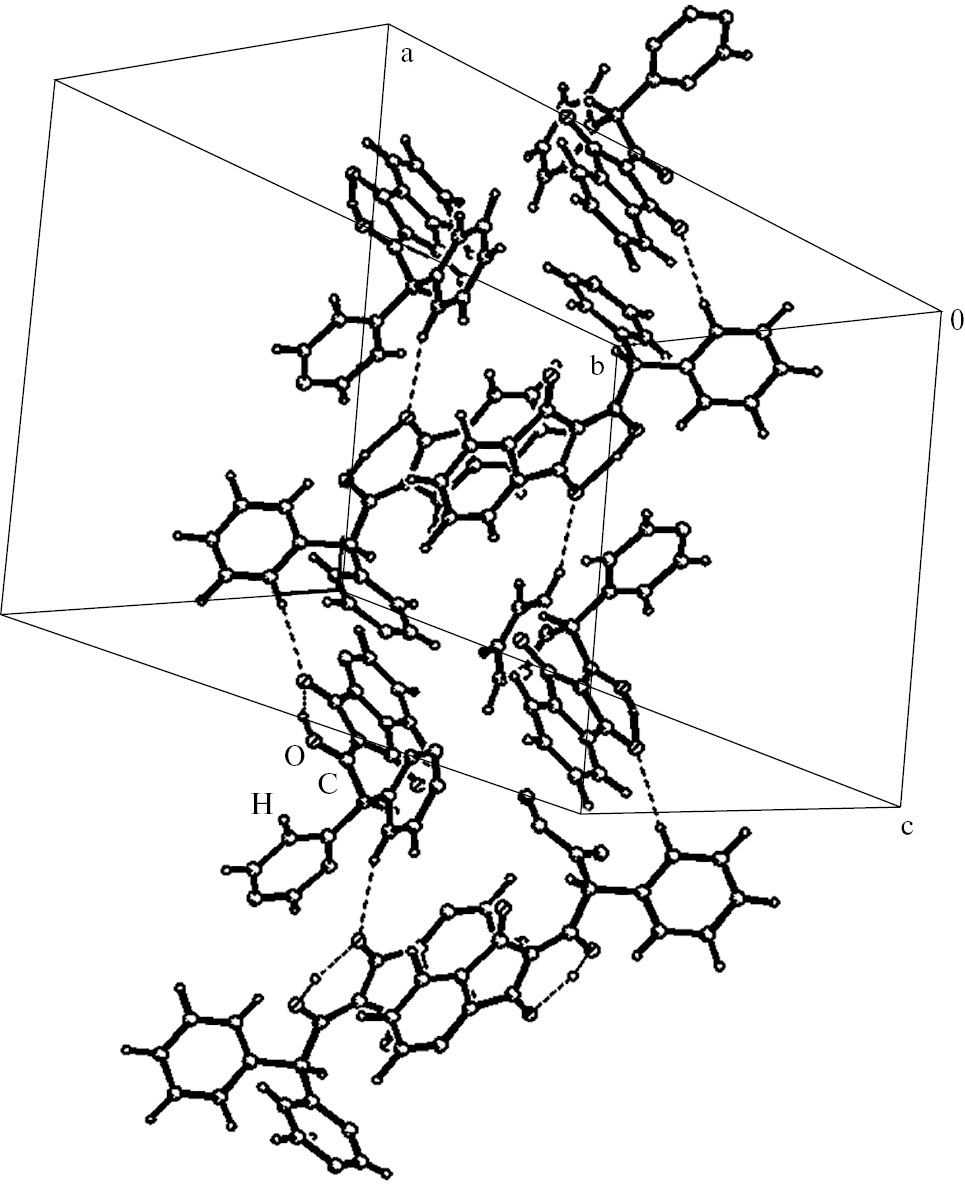Как было отмечено ранее, на конформационную подвижность индандионового бицикла вокруг связи С10–С11 влияют внутримолекулярные водородные связи. Можно предположить, что взаимное расположение фенильных колец (плоскости 2 и 3) прежде всего реализуется за счет стремления атома водорода Н11 к максимальному взаимодействию с π-системой фенильного кольца, а также из-за стремления минимизировать взаимное отталкивание фенильных колец. Для выполнения первого условия атом водорода H11 должен располагаться ортогонально плоскости фенильного кольца, при этом вероятность того, что другое фенильное кольцо будет располагаться ортогонально водороду H11, мала, поскольку это приводит к большим стерическим затруднениям между фенильными кольцами. Статистический анализ большого количества литературных данных для молекул, содержащих при атоме углерода (С11) два фенильных кольца, атом водорода и атом углерода, показал, что плоскость симметрии, проходящая через атомы С1, … С10, С11, маловероятна. Эта вероятность стремиться к нулю, если атом С10 (как и в нашем случае) находится в sp3-гибридном состоянии. Фенильные кольца в подобных молекулах не связаны плоскостью симметрии. Таким образом, получается, что атом С11 является хиральным и молекула может проявлять оптическую активность. Из вышесказанного следует, что в кристаллах всех полиморфных модификаций мы наблюдаем стереоизомеры в равных количествах, т.е. рацемат (пространственные группы всех полиморфов содержат плоскости).