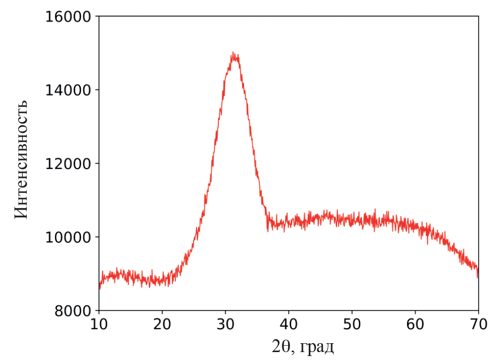 Рис. 1. РФА синтезированного образца стекла, образованного оксидами CaO, Al2O3 и SiO2.