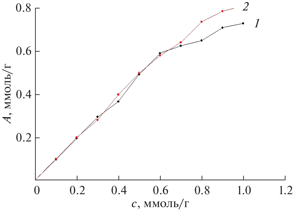 Предложен метод синтеза цеолитного имидазолатного каркаса на основе Fe(III) при различных соотношениях металл/линкер, который используется в качестве сорбента для извлечения ионов цинка(II) и меди(II). Для полученных материалов установлено, что частицы имеют гексагональную структуру и представляют собой микрогетерогенную систему со средним размером частиц 0.05–0.1 мкм. Получены изотермы адсорбции азота в порах Fe-ZIF. В результате их обработки найдены параметры пористой структуры синтезированных образцов. Исследована адсорбция ионов Cu2+ и Zn2+ из водных растворов при температуре 298.15 K и показана их высокая степень извлечения. Процесс адсорбции ионов меди и цинка во всех случаях является самопроизвольным. Максимальная степень заполнения активных центров поверхности достигает 0.96 и 0.71 для меди и цинка соответственно. Установлено протекание адсорбции в объеме энергетически однородного пористого адсорбента и преобладание в структуре 2-этилимидазолата железа(III) микропор.