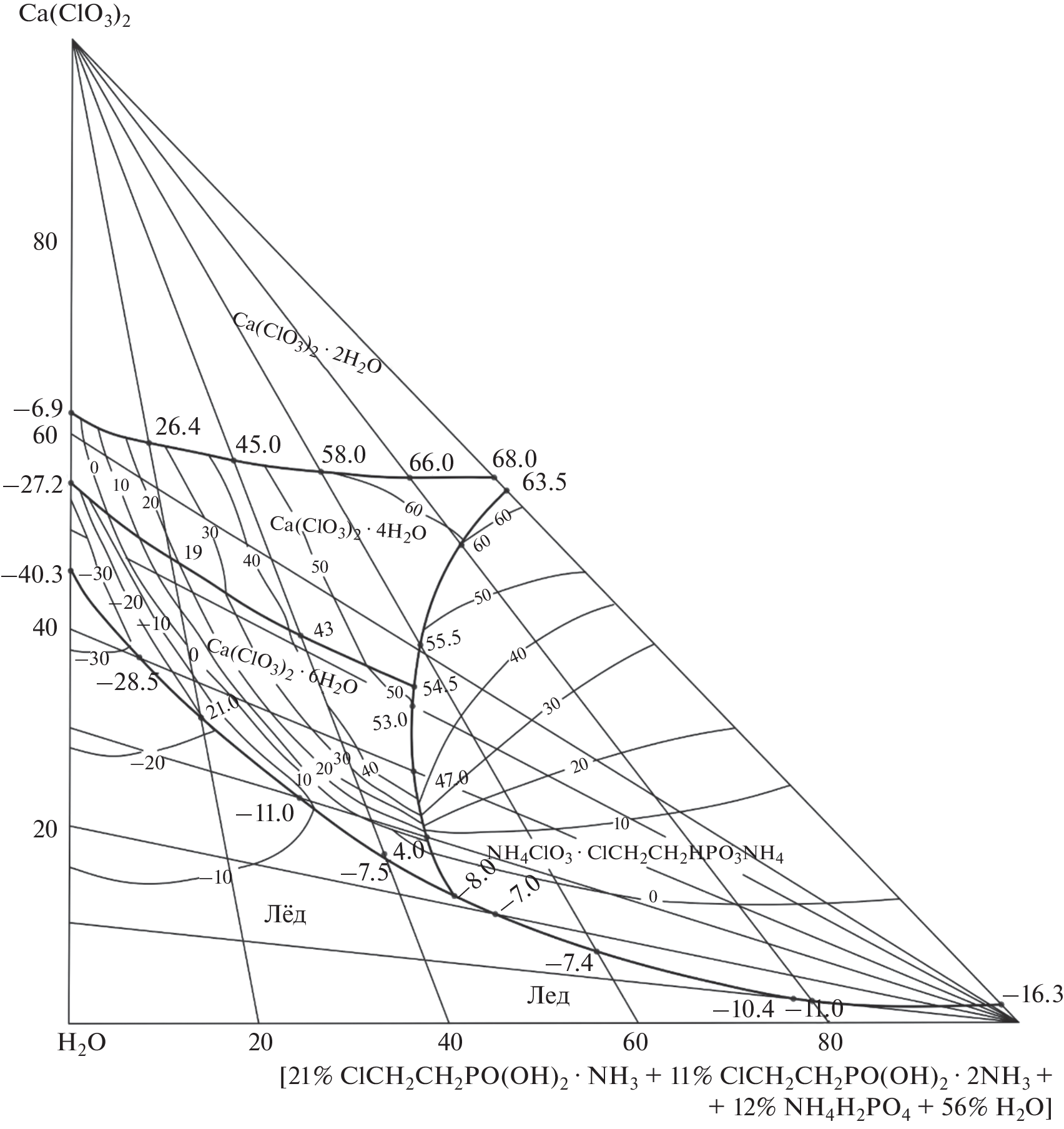 Изучение политермы растворимости компонентов в системе Ca(ClO3)2–[21% ClCH2CH2PO(OH)2 ⋅ NH3 + 11% ClCH2CH2PO(OH)2 ⋅ 2NH3 + 12% NH4H2PO4 + 56% H2O]–H2O