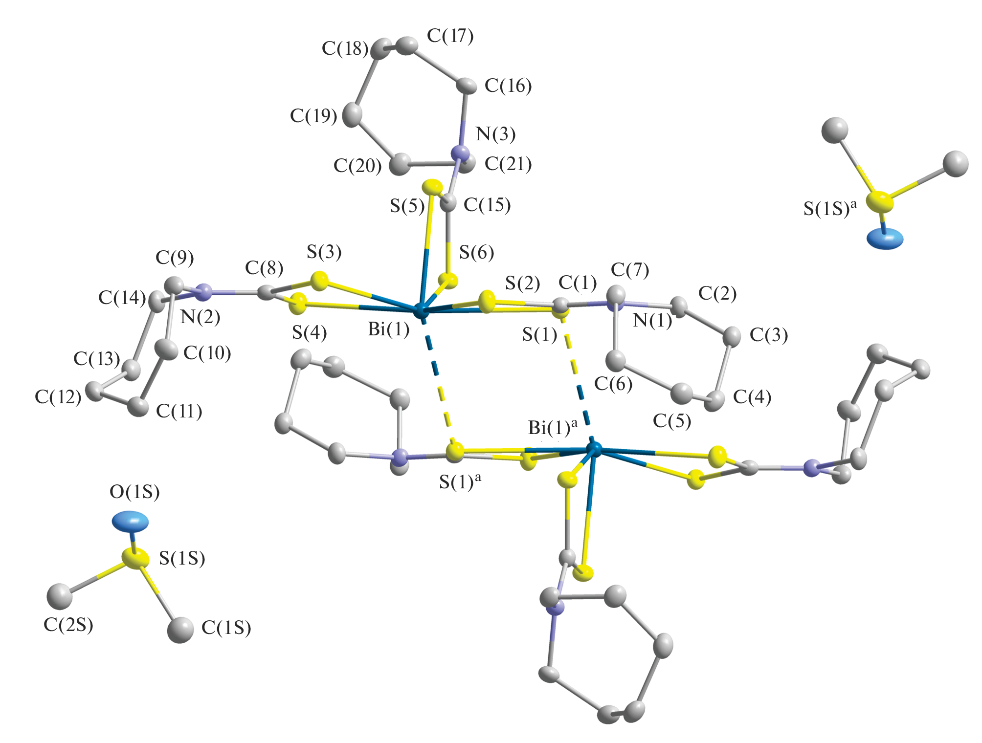 Isomeric Molecular Forms of Pseudo-Binuclear Bismuth(III) Dithiocarbamate [Bi2{S2CN(CH2)6}6]: Preparation, Thermal Behavior, and Structural Effect of Its Solvation with DMSO, [Bi2{S2CN(CH2)6}6]⋅2(CH3)2SO