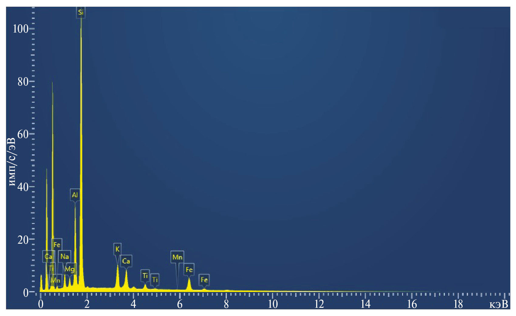 Рис. 4. Спектр образца андезибазальта, полученный при увеличении 500×.
