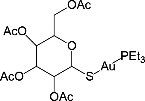 Как и для обычных тиолатов золота(I), при недостатке ATGS– образуется биядерный комплекс: 2AuCl(PEt3) + ATGS– = (ATGS)[Au(PEt3)]2 + 2Cl–, lgK1 = 3.3. Взаимодействие ауранофина Au(ATGS)(PEt3) с сывороточным альбумином изучали в работах [11, 32]. При этом ATGS– замещается на неокисленный остаток цистеина AlbCys34S– быстрее, чем за 5 мин, и образуется комплекс вида (AlbCys34S)Au(PEt3).
