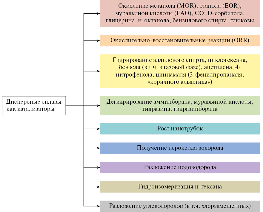 Рис. 1. Практически значимые процессы, катализируемые дисперсными сплавами