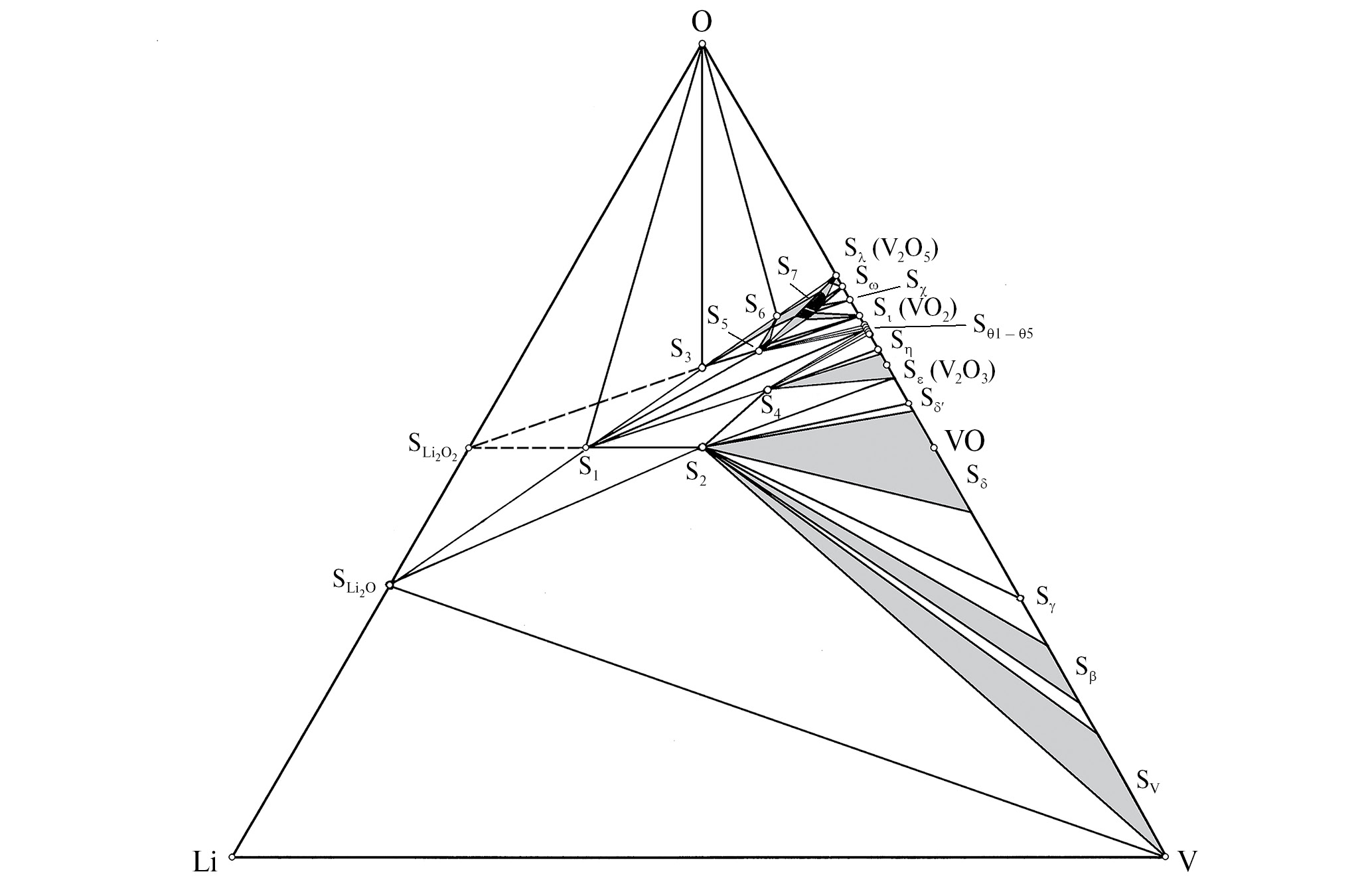 Рис. 6. Изотермическая концентрационная диаграмма Li–V–O.