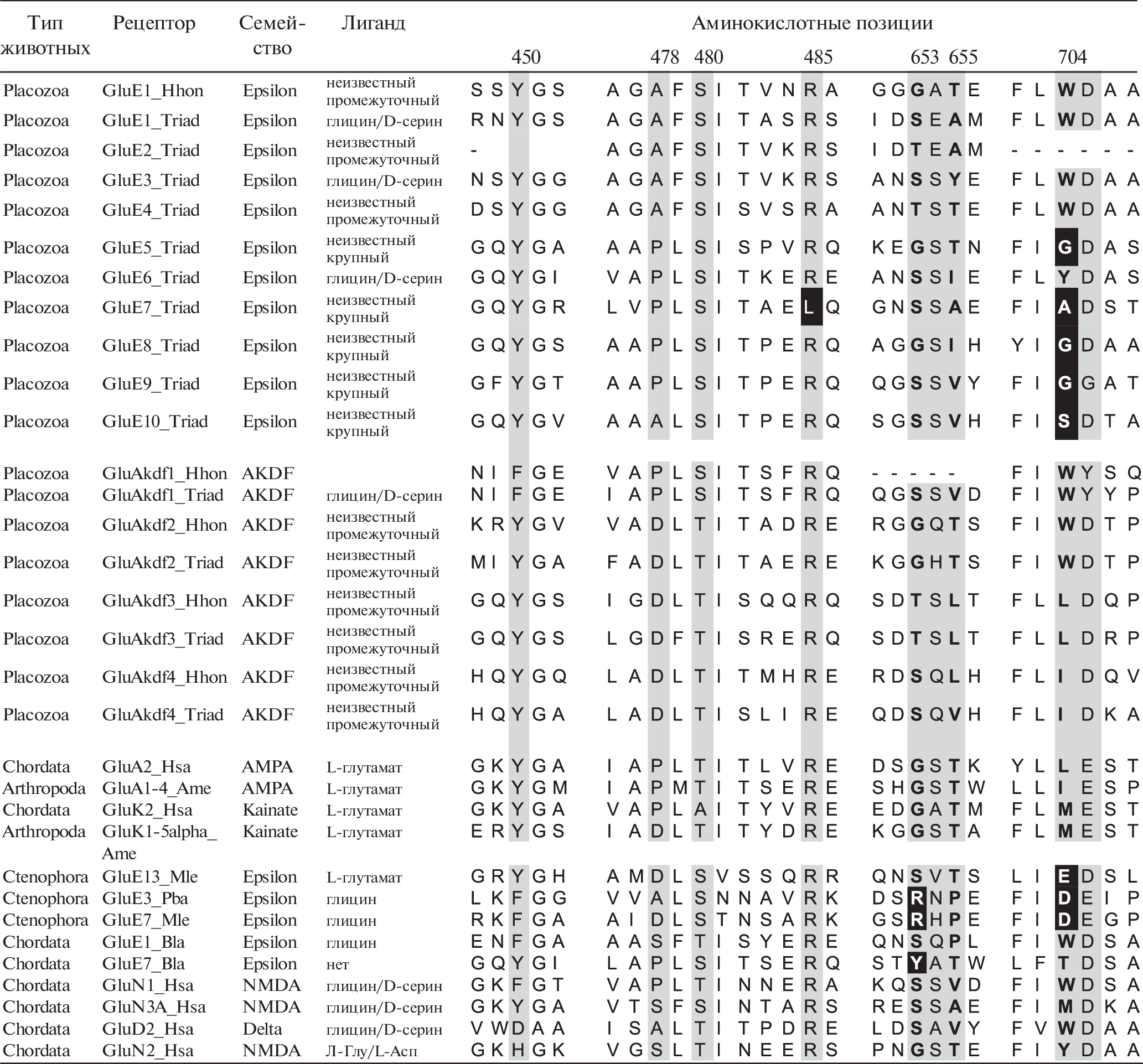 - Alberstein R., Grey R., Zimmet A., Simmons D.K., Mayer M.L., 2015. Glycine activated ion channel subunits encoded by ctenophore glutamate receptor genes // Proc. Natl. Acad. Sci. USA. V. 112. № 44. P. 6048–6057.