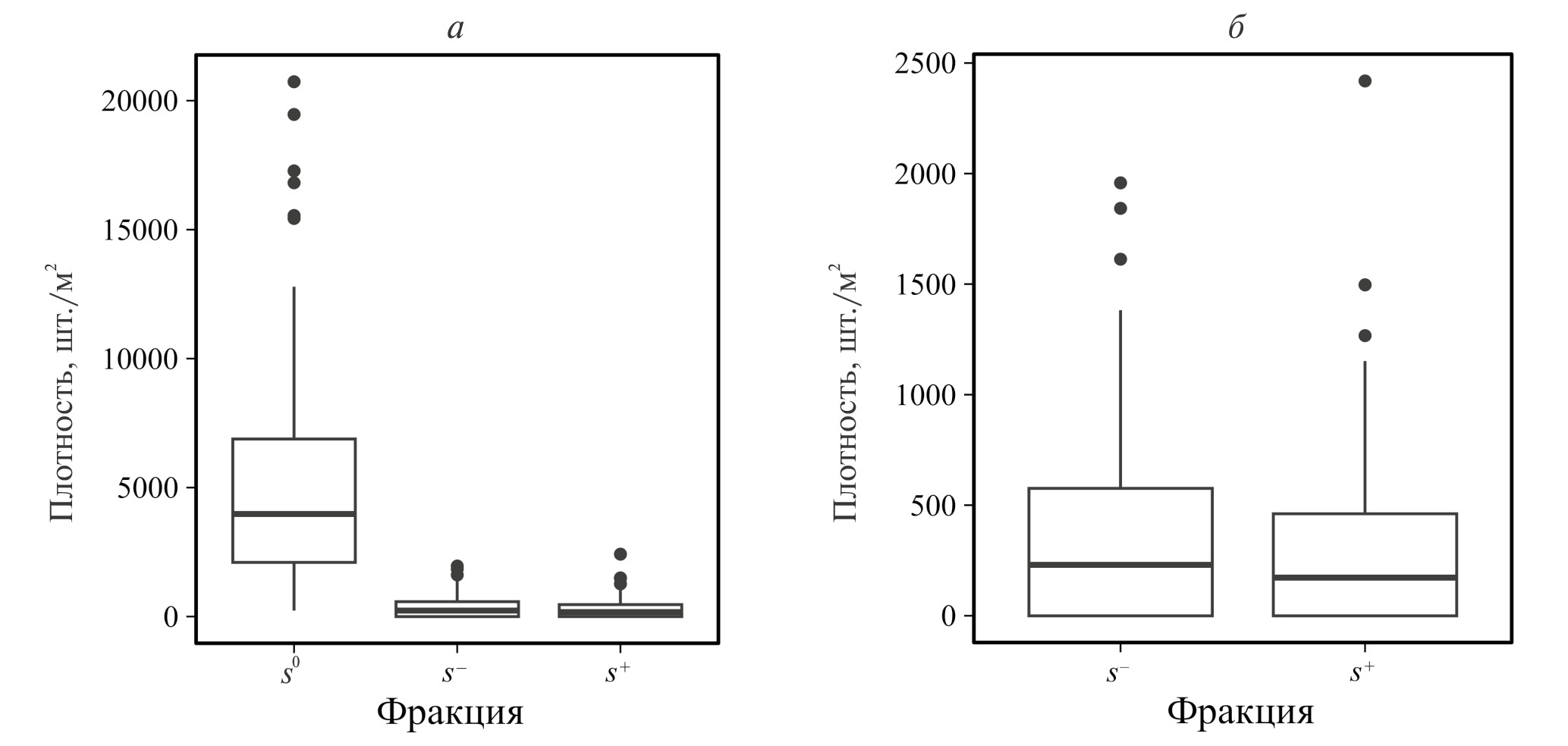 Обобщение результатов наблюдений за ЦП H. mantegazzianum в течение годичного цикла показало, что весной медианная плотность фонда жизнеспособных семян и проростков снижалась на 25%, а к середине вегетации их фонд расходовался практически полностью (рис. 4а). Плотность ювенильных особей оставалась относительно стабильной в течение всего года. К осени медианная численность ювенильных растений равнялась 230 шт./м2 (рис. 4б). После перезимовки их численность снижалась в 2 раза. Вместе с тем дружное прорастание семян и быстрое развитие проростков способствовали восстановлению плотности ювенильных растений.