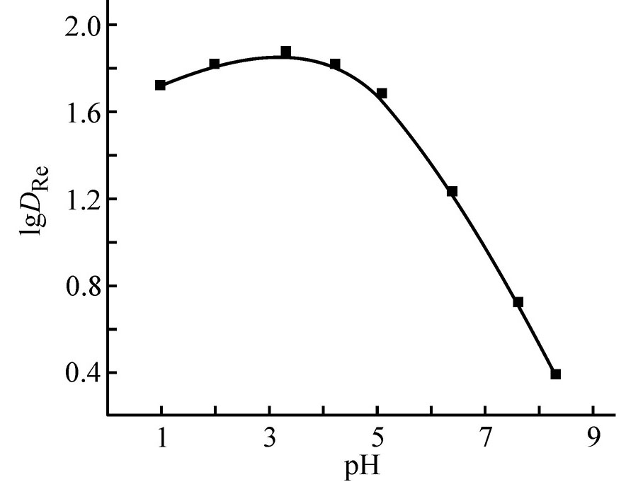 Природа органического растворителя оказывает существенное влияние на эффективность экстракции Re(VII). Величина DRe возрастает по мере увеличения полярности органического растворителя (табл. 1), что характерно для экстракции ионных ассоциатов. Аналогичная зависимость эффективности экстракции рения от природы органического растворителя получена при экстракции фосфорилированными аминами [15, 16].