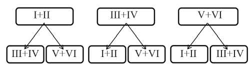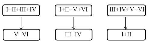 Рассмотрим две стратегии межклассового прогноза активности с использованием трех комбинаций соединений: I+II, III+IV и V+VI (рис. 1, 2). В первой стратегии (МПА-1) для создания рабочих моделей активности используются соединения, входящие в одну комбинацию соединений, а прогноз осуществляется для двух оставшихся комбинаций. Во второй стратегии (МПА-2) конструируются модели на основе двух комбинаций, а межклассовый прогноз проводится для третьей комбинации соединений.
