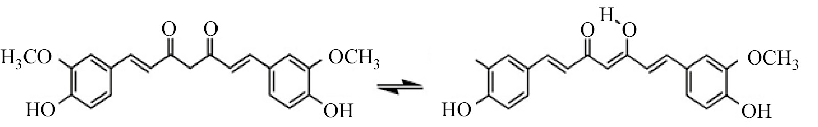 Куркумин [1,7-бис(4-гидрокси-3-метоксифенил)-1,6-гептадиен-3,5-дион] представляет собой бис-α,β-ненасыщенный β-дикетон, содержащий два остатка феруловой кислоты, соединенных метиленовым мостиком (схема 1) и существующий в растворах в различных таутомерных формах [9–15]. На схеме 1 показано таутомерное равновесие красителя в кетонной (kCUR) и енольной (eCUR) формах, проявляемых в средах данного исследования.