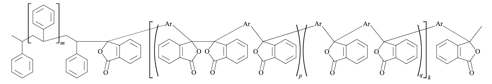 c — сополимеры II получены радикальной полимеризацией стирола в присутствии сополиариленфталидов I и имеют следующую общую структуру: