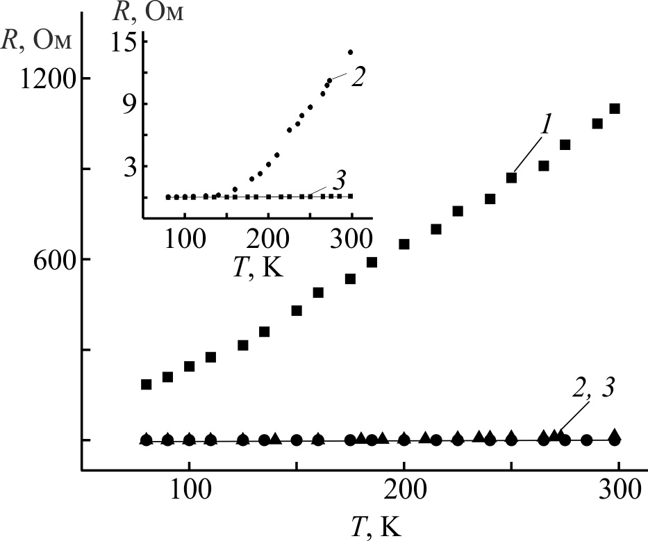 Температурные зависимости сопротивления были получены в сэндвич-структурах в температурном диапазоне 80–298 K по методике [9].