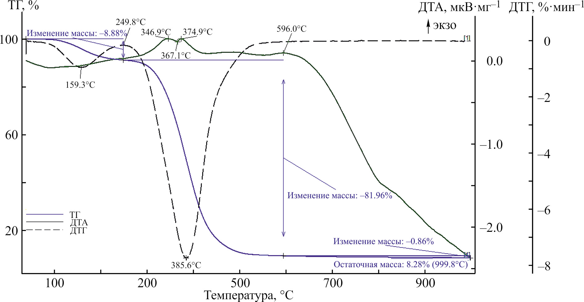 Авторы выражают признательность научному сотруднику кафедры физической химии МГУ им. М. В. Ломоносова к.х.н. Я. Б. Платоновой за подбор условий эксперимента, выполнение и расшифровку анализа термической стабильности образцов.
