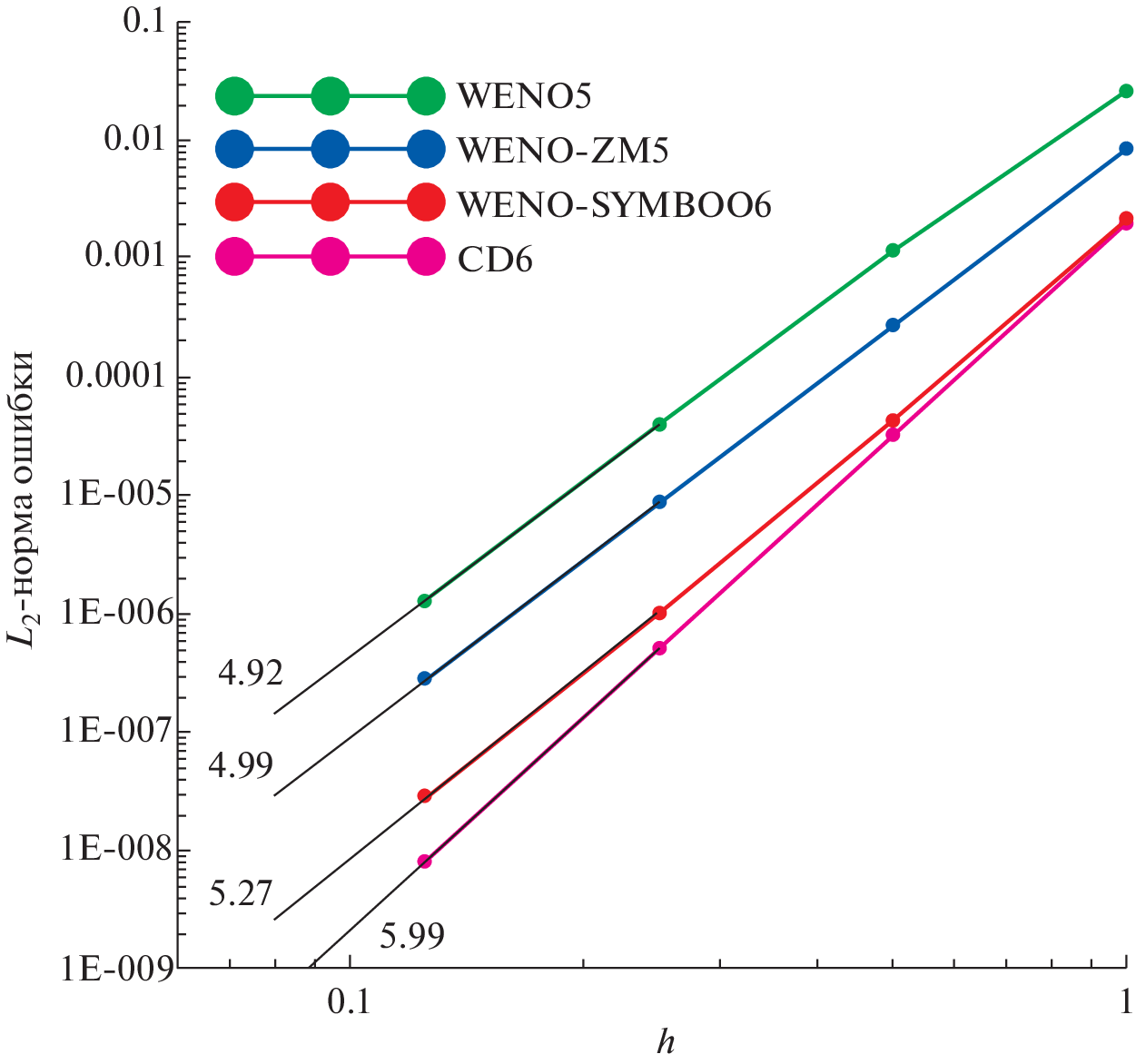 - Zhang R., Zhang M., Shu C.W. On the order of accuracy and numerical performance of two classes of finite volume WENO schemes // Comm. Comp. Physics. 2011. V. 9. № 3. P. 807–827.