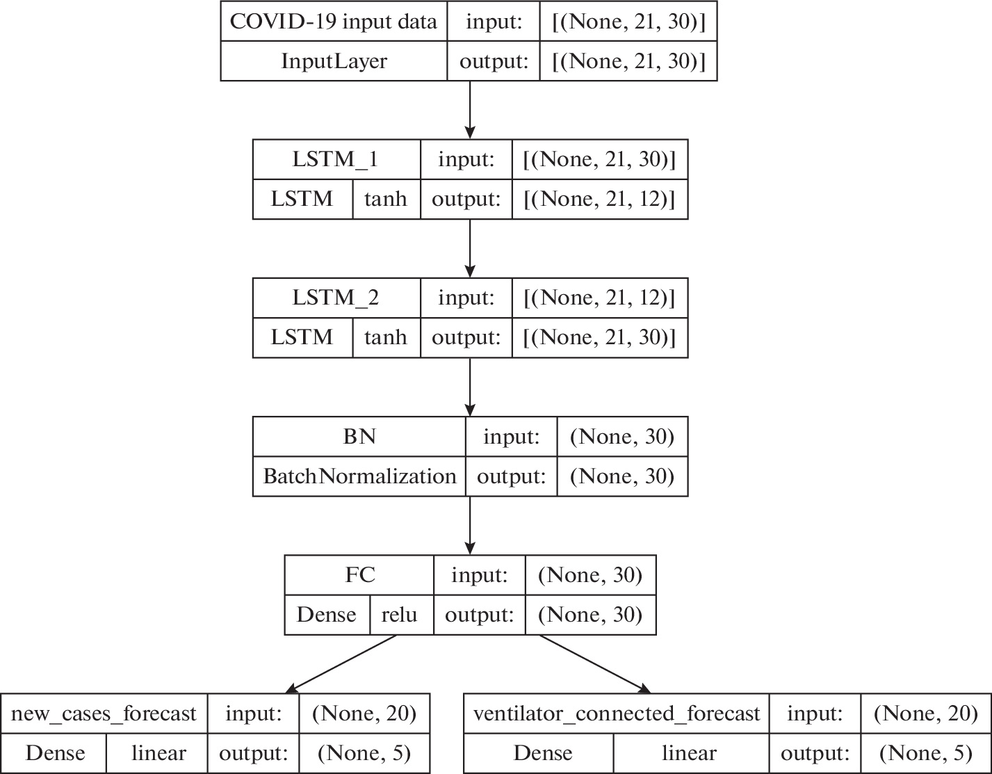 10. Nikparvar B., Rahman M.M., Hatami F., et al. Spatio-temporal prediction of the COVID-19 pandemic in US counties: modeling with a deep LSTM neural network // Sci. Rep. 2021. V. 11. P. 21715.