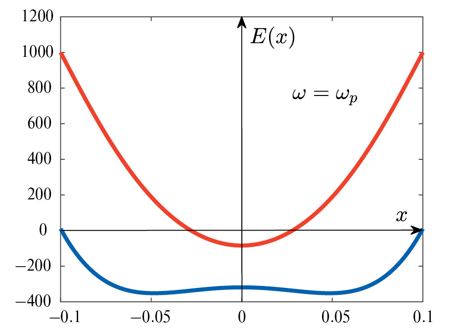 При увеличении частоты внешнего поля растет модуль постоянной составляющей Ea(x), увеличивается вклад слагаемого Ec(x), а также сильнее выражен эффект экранирования. При частоте внешнего поля, равной плазменной частоте ωp, возникает резонанс, который приводит к тому, что при частоте, немного превышающей плазменную, возникают осцилляции по координате.