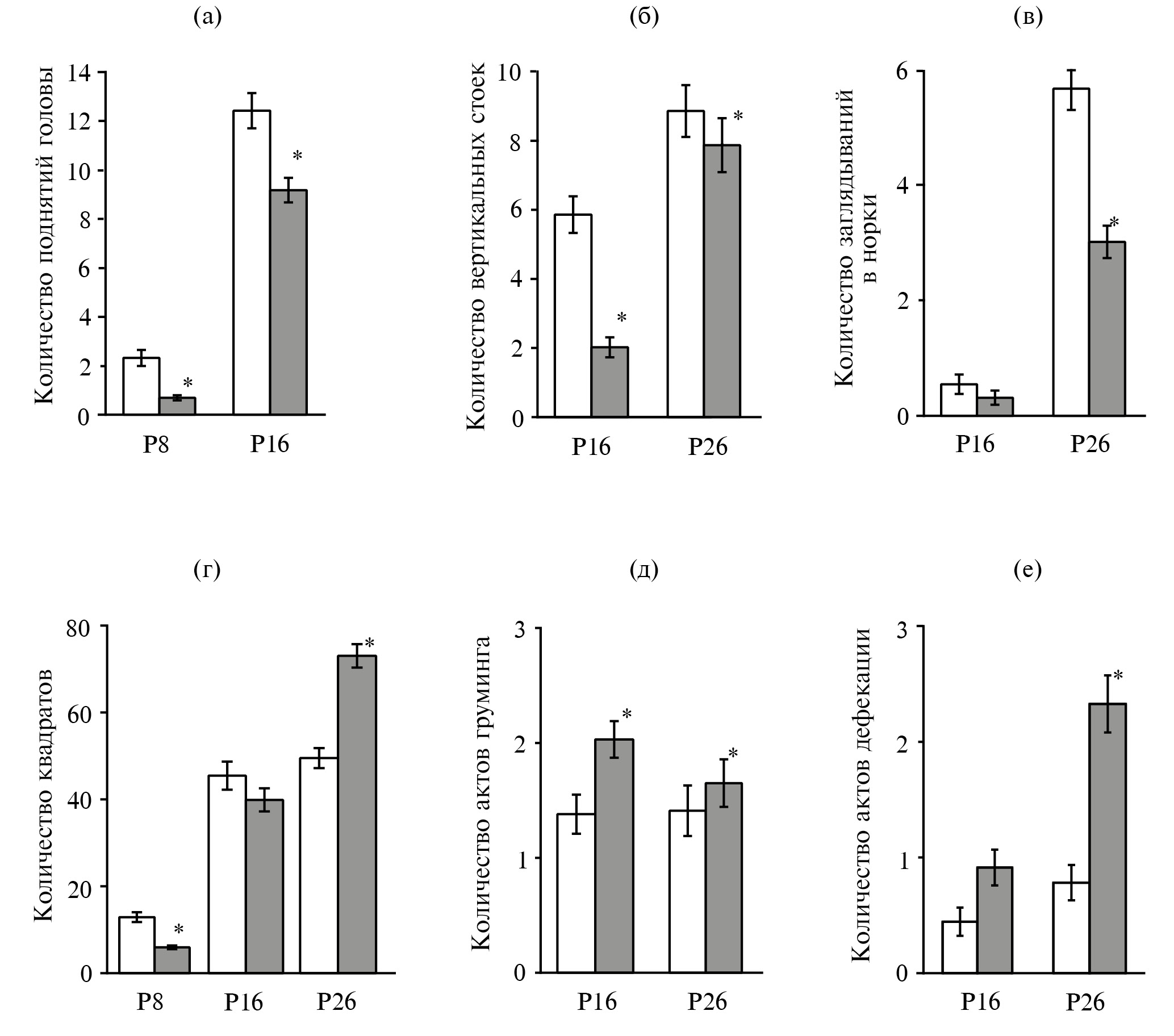 В тесте “открытое поле” (ОП) фиксируется стратегия поведения грызунов на открытой площадке. Тест ОП проводили трижды: на 8, на 16 и на 26 дни после рождения (Kraeuter et al., 2019; Yakovleva et al., 2019).