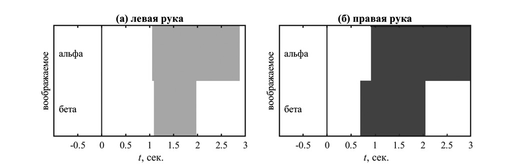 Поскольку в настоящей работе инструкции были сходными в случае реального и воображаемого движения, при всей лабильности времени реакции мы можем предположить, что первые 700 мс после императивного сигнала соответствуют подготовке к движению также и для воображаемого движения, что подтверждается динамикой десинхронизации в M1 (рис. 1).