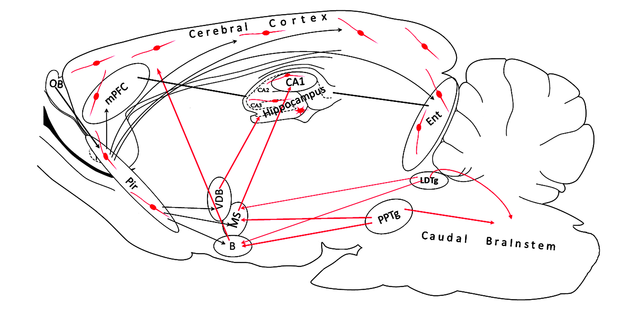 - Jones B.E. Immunohistochemical study of choline acetyltransferase immunoreactive processes and cells innervating the pontomedullary reticular formation in the rat. J. Comp. Neurol. 1990. 295: 485–514.