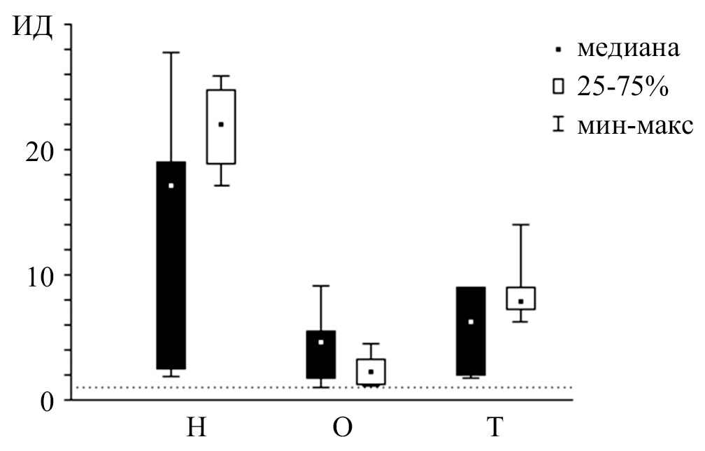 Попарное сравнение ИД (тесты Вилкоксона и Манна – Уитни) показало: