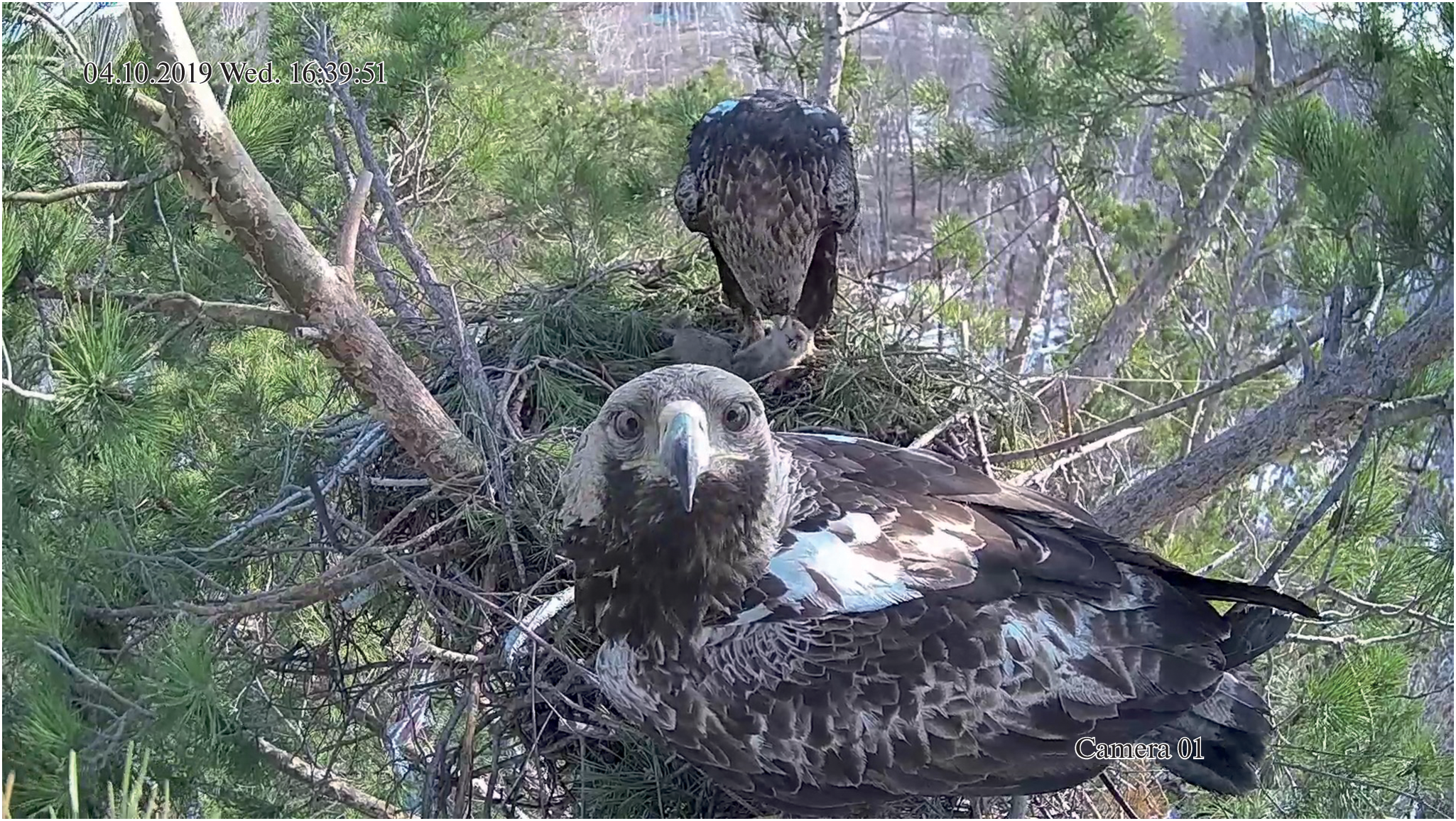 The seasonal and between-year dynamics in the diet of a pair of Imperial eagles (Aquila heliaca) were observed at a nesting site on the left bank of Volga River in the Ulyanovsk Region, European Russia. The research covered three seasons (2019–2021) using an autonomous video surveillance system. During the research period, 555 prey objects brought by eagles to the nest were identified, these representing 30 taxa of wild vertebrates and four species of domestic animals, all from four vertebrate classes. The predominant prey objects were the Russet ground squirrel (Spermophilus major) (35%), the Rock pigeon (Columba livia) (22%), and the Common hamster (Cricetus cricetus) (14%). Rodents prevailed in nutrition during nest construction (April), hatching (May), and at the initial stages of feeding the chick(s) (June–July). The proportion of pigeons and corvines increased significantly in nutrition during the feeding period of grown-up chicks and fledglings (August–September). Raising two chicks compared to one chick led to an average of 1.5 times increase in food intake, mainly due to rodents.