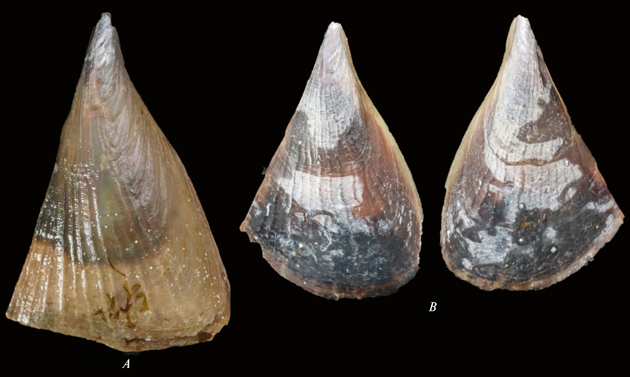 Description. Shells medium-sized (4–8 cm in length), elongated oval. The shell is fairly thick. Outer sculpture fine concentric lines corresponding to periods of growth. The basic colour is white and the periostracum is brown, but the latter is usually abraded. The interior surface is glossy white.