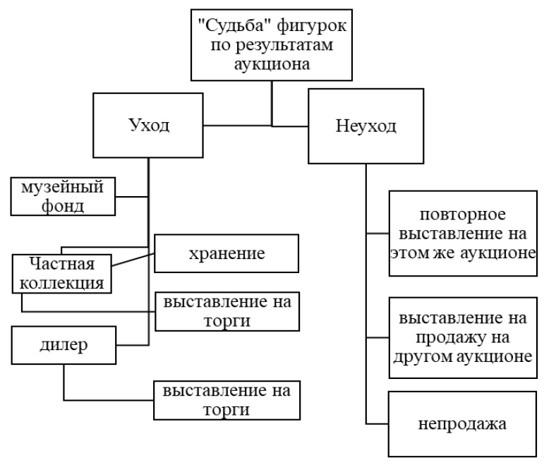 Несколько иначе складываются истории терракот в случаи их неухода или непродажи. Дальнейшая судьба этих лотов всецело зависит от волеизъявления «хозяина». В целом можно определить три вектора действий владельцев. Наиболее простой — это всего лишь непродажа фигурки и не выставление ее на торги. Владелец в данном случае начинает выполнять функции ценителя древностей, коллекционера, целью которого является формирование коллекции, и просто хранителя редких артефактов, к которым он испытывает определенные чувства, не имеющие отношения к корыстным целям, в частности, к получению денег.