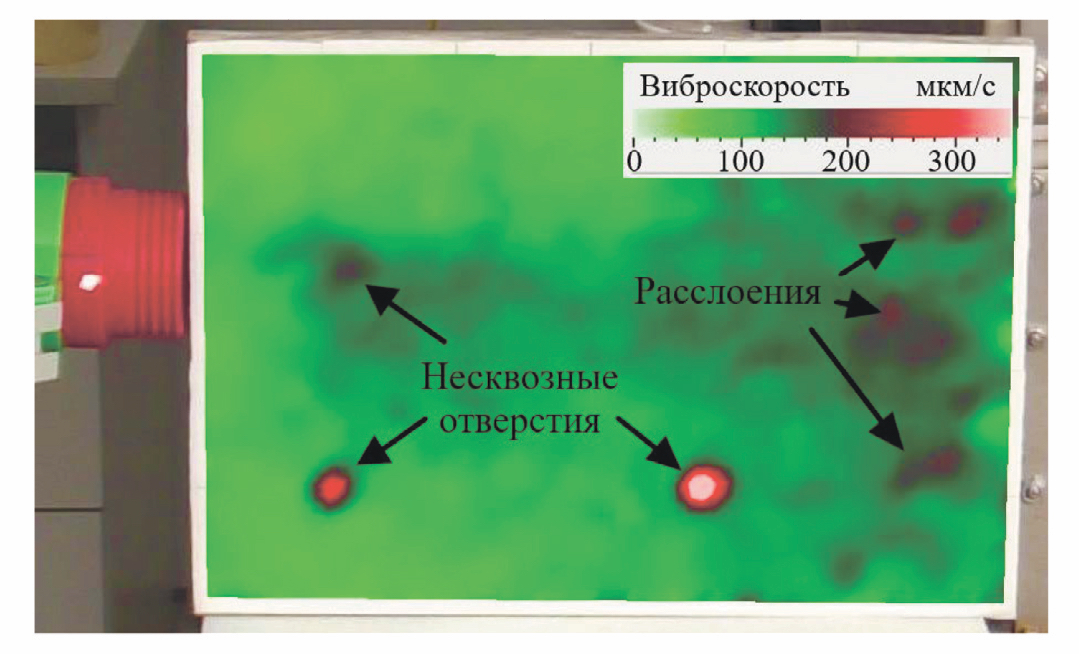 Одним из сравнительно новых методов неразрушающих испытаний материалов является сканирующая лазерная доплеровская виброметрия [8—14]. Суть метода заключается в широкополосной акустической стимуляции объектов с целью определения резонансного отклика в области дефектов путем регистрации колебаний на поверхности изделий с использованием сканирующего лазерного виброметра [12—16]. Основным преимуществом метода является возможность проведения исследований без прямого контакта с контролируемым объектом, что позволяет с высокой точностью измерять вибрации на расстоянии до нескольких десятков метров [12], а также исследовать объекты, находящиеся под напряжением, под воздействием высоких температур, в вакуумных камерах и в жидкостях [14, 15]. В последние годы лазерная виброметрия находит все более широкое применение в НК современных конструкционных материалов [15], а также используется для исследования сопутствующего оборудования, в частности акустических излучателей [10, 16—22].