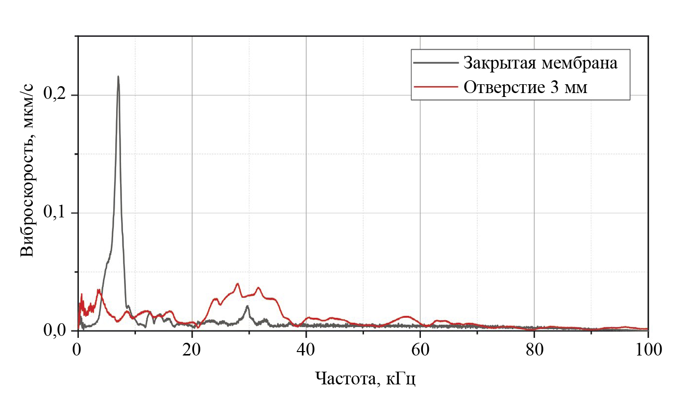 Колебания мембраны ГЭАП были зарегистрированы с использованием лабораторной установки на основе сканирующего лазерного доплеровского виброметра (рис. 2).