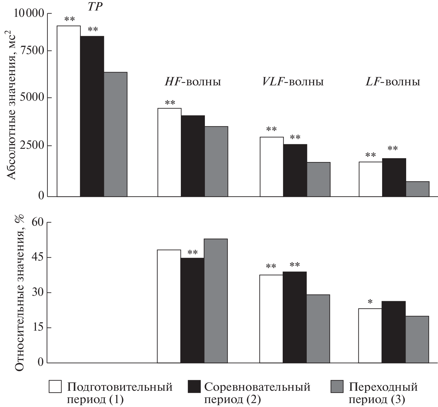 Dynamics of TP, HF-, LF- and VLF- Waves of the Cardiointervalogram (in Clinostasis Conditions) of an Elite Ski Racer in the Preparatory, Competitive and Transitional Periods, Depending on the Volume and Intensity of Training Loads
