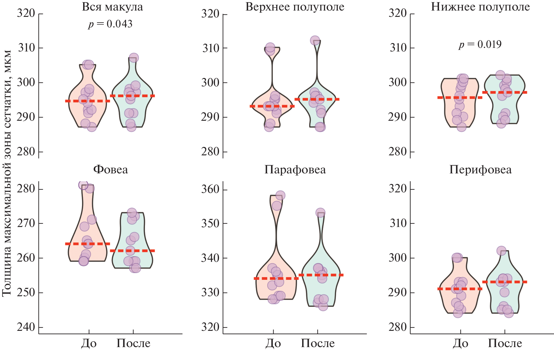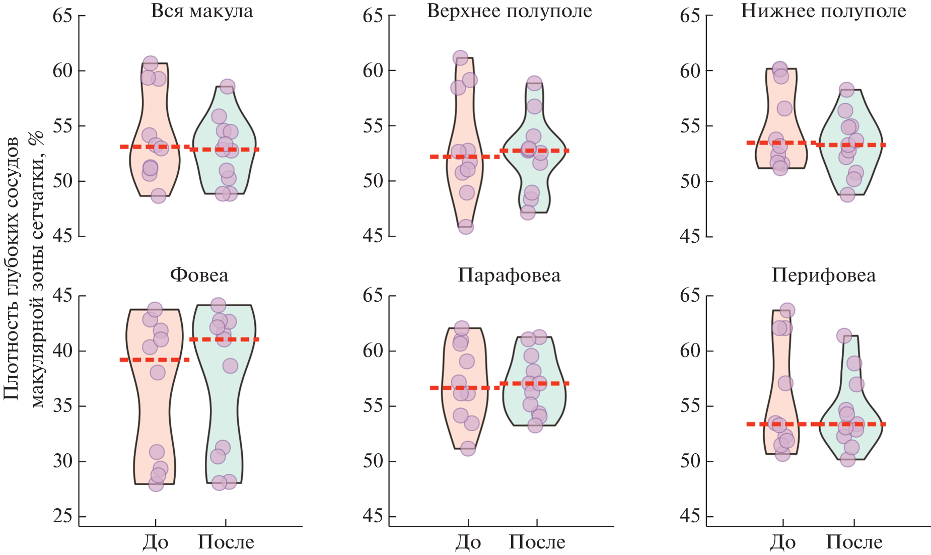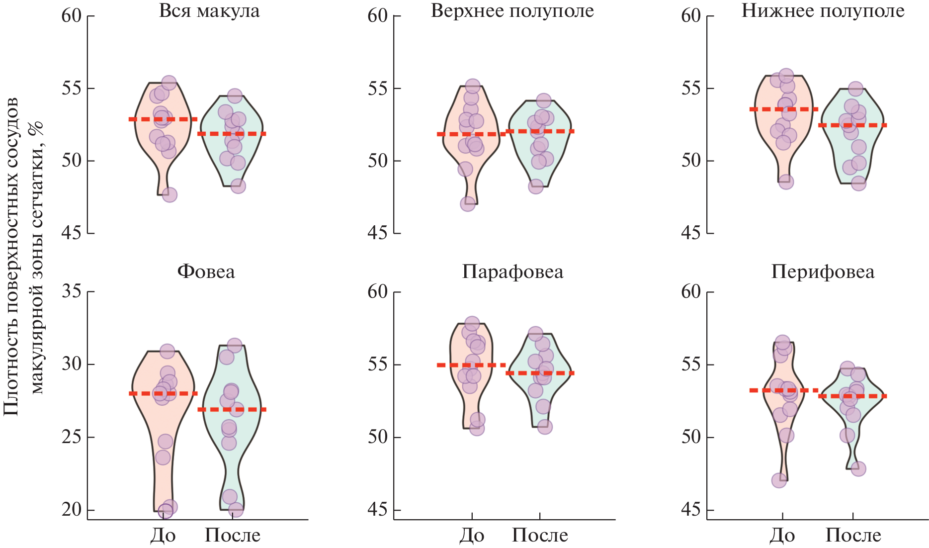 Studies in conditions of head-down tilt bed rest are widely used experiments which imitate redistribution of body fluids similar to the redistribution of fluid media in microgravity. To study the mechanism of development of spaceflight-associated neuro-ocular syndrome (SANS) in head-down tilt bed rest studies scientists have evaluated, among other things, participants’ visual system parameters. The main symptom of SANS is an edema of an optic disc and a retina. To date, the results describing the influence of head-down tilt bed rest on the visual system are ambiguous, which determines the relevance of further research. The aim of the study is to analyze retinal morphometry in the optic disc area and macular area in participants before and after 21-day head-down tilt bed rest. The study was performed using an optical coherence tomography with angiography function (Optovue RTVue XR Avanti System) before and after 21-days of head-down tilt bed rest. In 4 participants (8 eyes) (men, mean age ± standard deviation: 29.3 ± 3.9 years) the macular zone and optic disc area were evaluated according to standard scanning modes. To analyze the values obtained, we used mean tendency scores, mean comparison criteria, and graphical analysis. The results of the retinal thickness in the optic disc zone were consistent with those of other researchers, indicating a possible increase in retinal thickness, but our results did not reach the level of statistical significance. A statistically significant thickening of the retina in the macular zone was shown for the first time, but the increase is significantly less in amplitude than the thickening of the nerve fiber layer in the optic disc zone. Analysis of vascular density under head-down tilt bed rest conditions was performed for the first time both for the optic disc zone and the macula zone, but additional studies are required to obtain steady conclusions. For the first time, an increase in retinal thickness in the macula zone in participants of head-down tilt bed rest experiments was shown; for the optic disc zone, data consistent with the results of other researchers were obtained. For the first time, angiographic data were obtained for the macula and optic disk areas, but the obtained differences in vascular density did not reach the level of statistical significance.