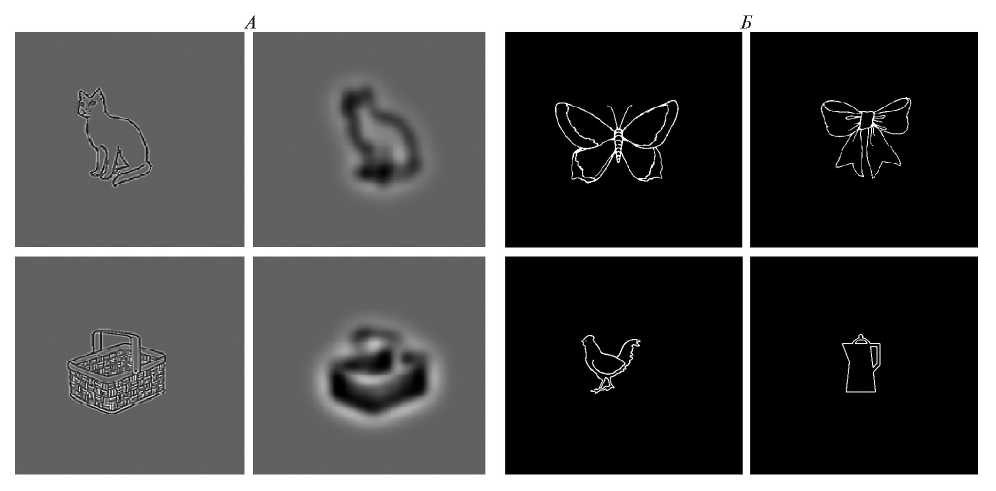 Таким образом, существует большое количество работ, посвященных данной задаче. Однако проблема исследований механизмов категоризации изображений – объектов живой и неживой природы – все еще остается недостаточно изученной, до сих пор нет ясного описания того, как происходит процесс отнесения к классам и категориям. Известно, что при отнесении объекта к какой-либо категории наблюдатели могут использовать либо присущие данному объекту признаки, либо определять форму объекта в целом [12, 13]. Так, ранее были проведены исследования по оценке сложности контурных изображений и ее моделированию [14]. Оказалось, что эта оценка неоднозначна, зависит от алфавита изображений. Для контурных изображений оценки сложности были скоррелированы с количеством перегибов в изображениях [15]. Данная “криволинейность” в изображениях способна облегчить процесс категоризации контурных объектов живой и неживой природы [16–17]. Поэтому набор стимулов, представляющий из себя большую выборку контурных изображений, отличающихся по семантическим характеристикам, был подвергнут вейвлетной фильтрации избирательно в области высоких и низких пространственных частот [18–19]. В низкочастотных изображениях были подавлены локальные признаки, так как в спектре этих изображений убраны высокие пространственные частоты. В высокочастотных изображениях, наоборот, были подавлены глобальные признаки, так как были убраны низкие пространственные частоты. Инструкция на одном и том же наборе стимулов заключалась либо в классификации изображений по семантическому принципу, либо по физическому принципу размытый/не размытый объект.